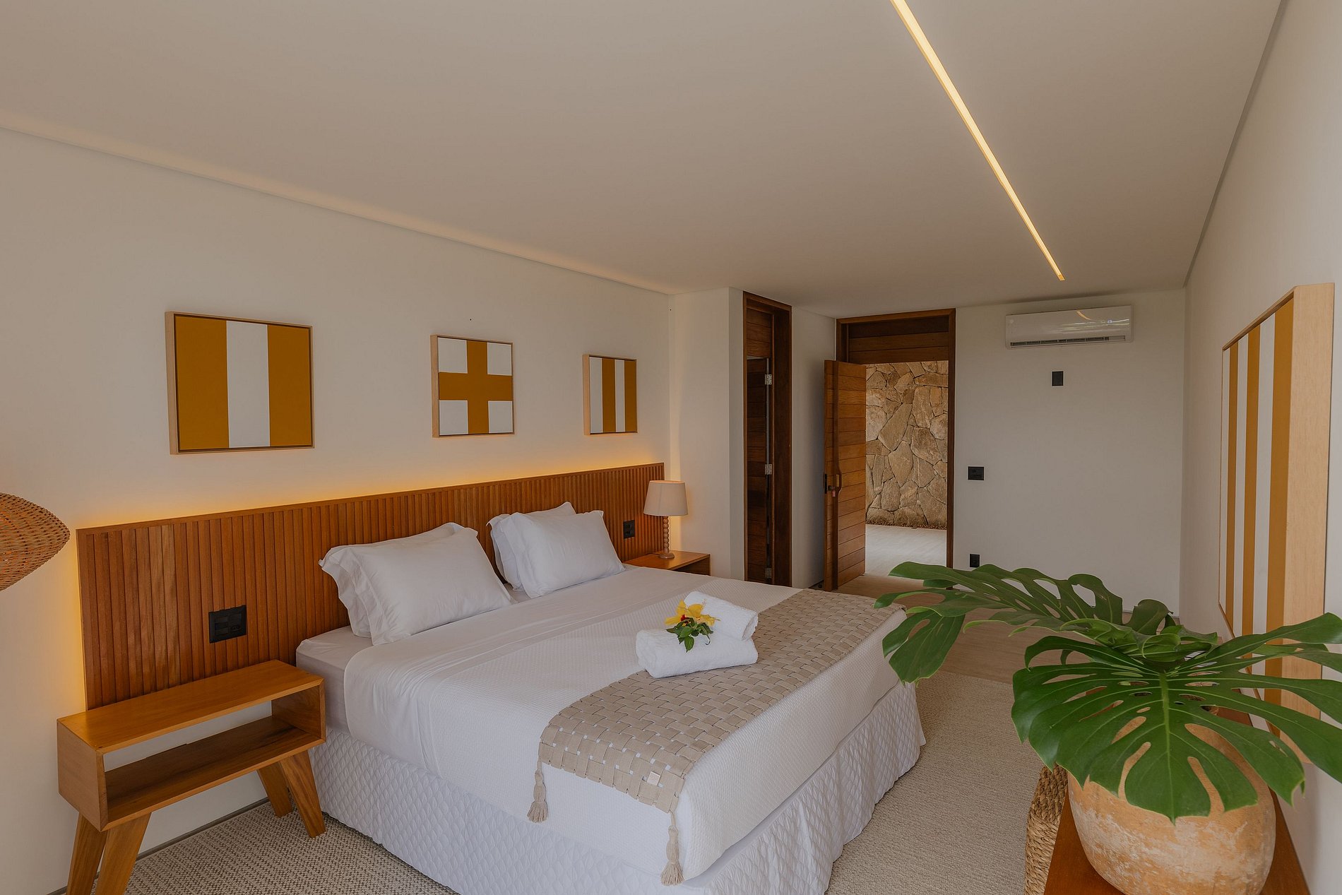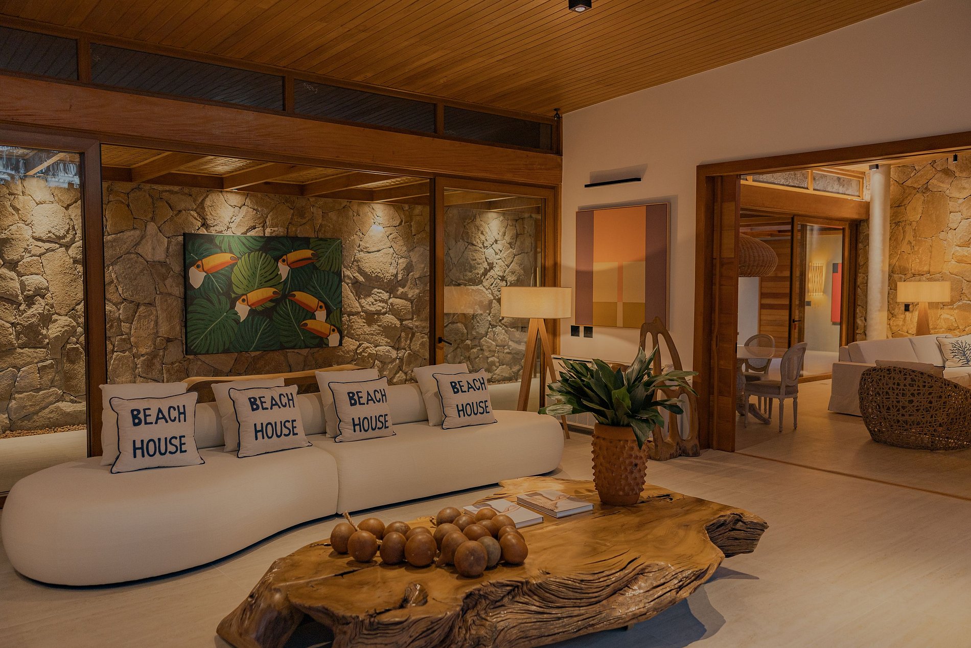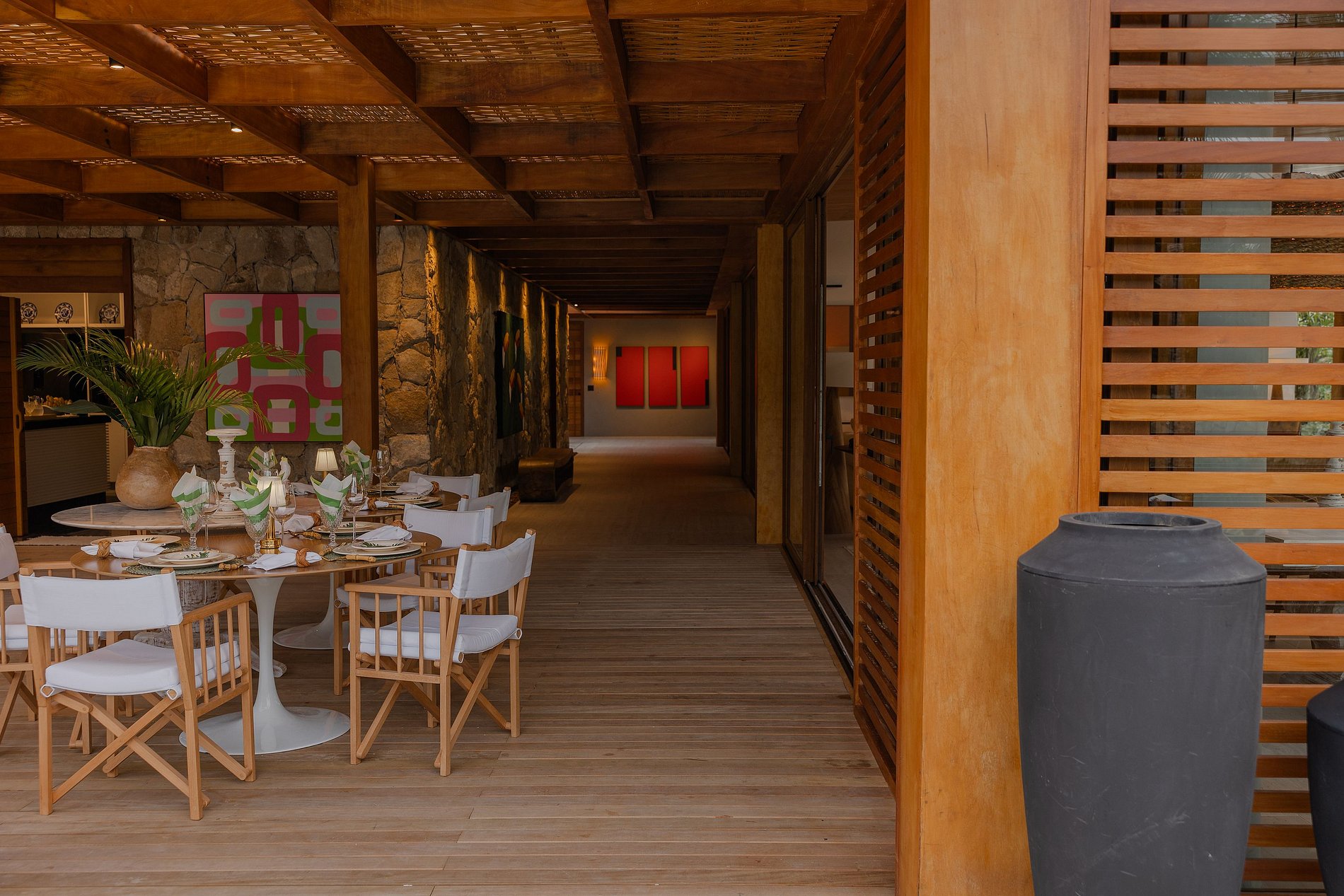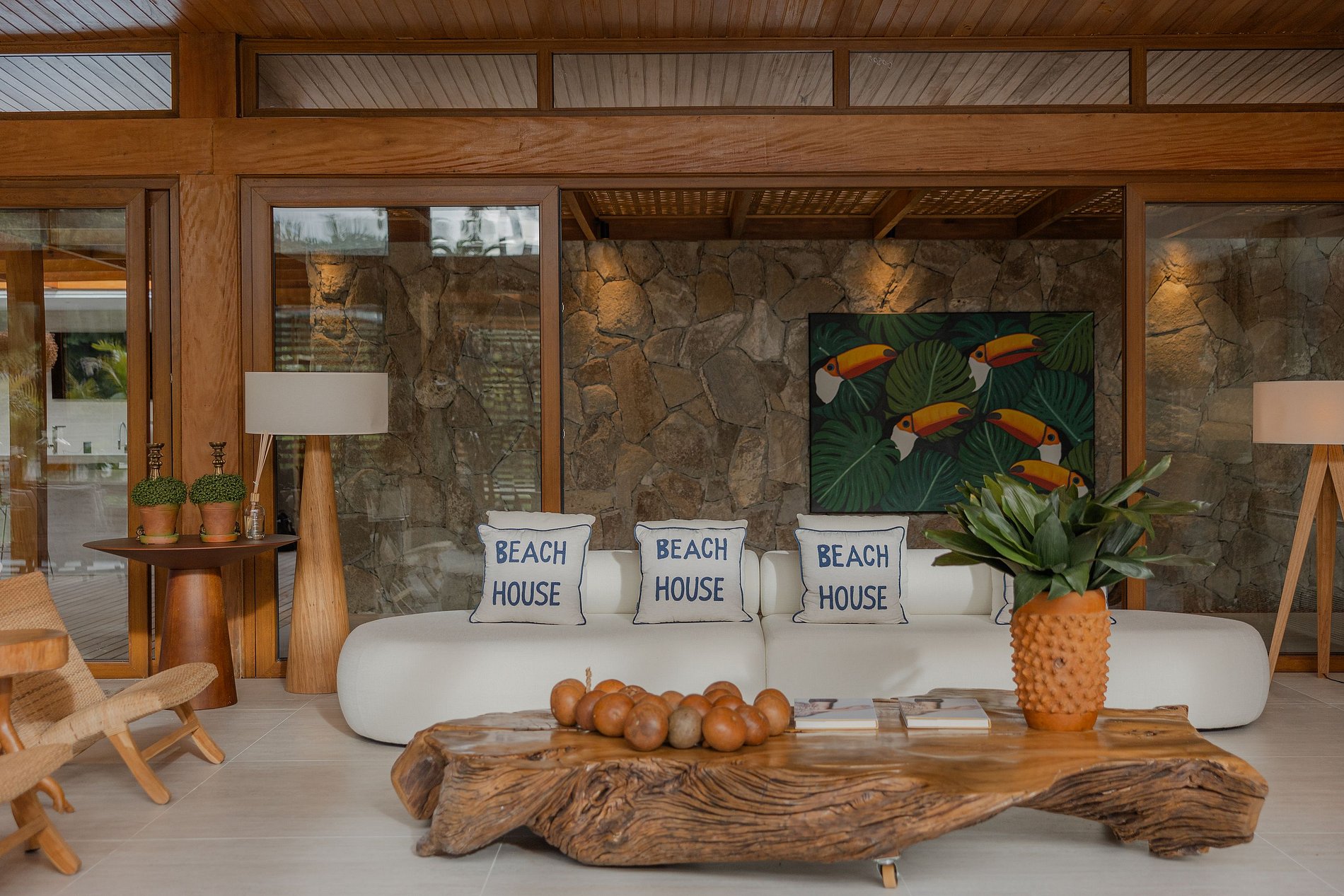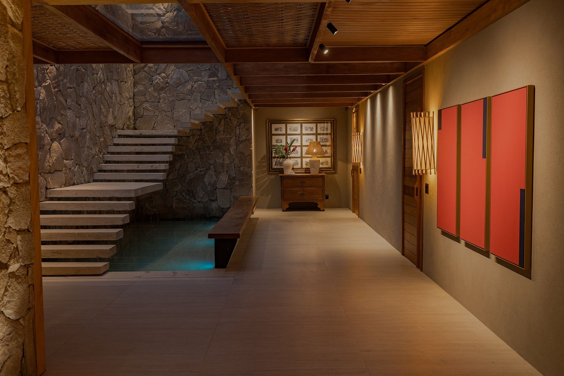 La residencia tiene un frente de 30 m3 y un lado de 40 m, totalizando 70 m, y se distribuye en 2 plantas, con cochera techada para 2 autos, hall de entrada, sala, cine en casa, comedor, amplia cocina, lavandería. , 10 baños (incluidos los de las suites). El Área Externa consta de una cocina gourmet,