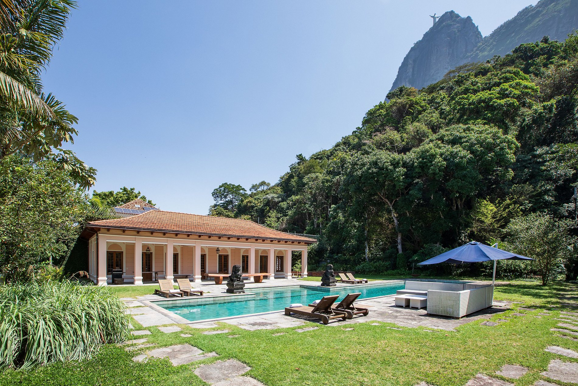 Enclavada en el corazón del frondoso barrio del Jardín Botánico de Río de Janeiro, esta excepcional propiedad histórica se encuentra en una espectacular parcela de 99.581 m² a los pies del Corcovado y del majestuoso Cristo Redentor.
