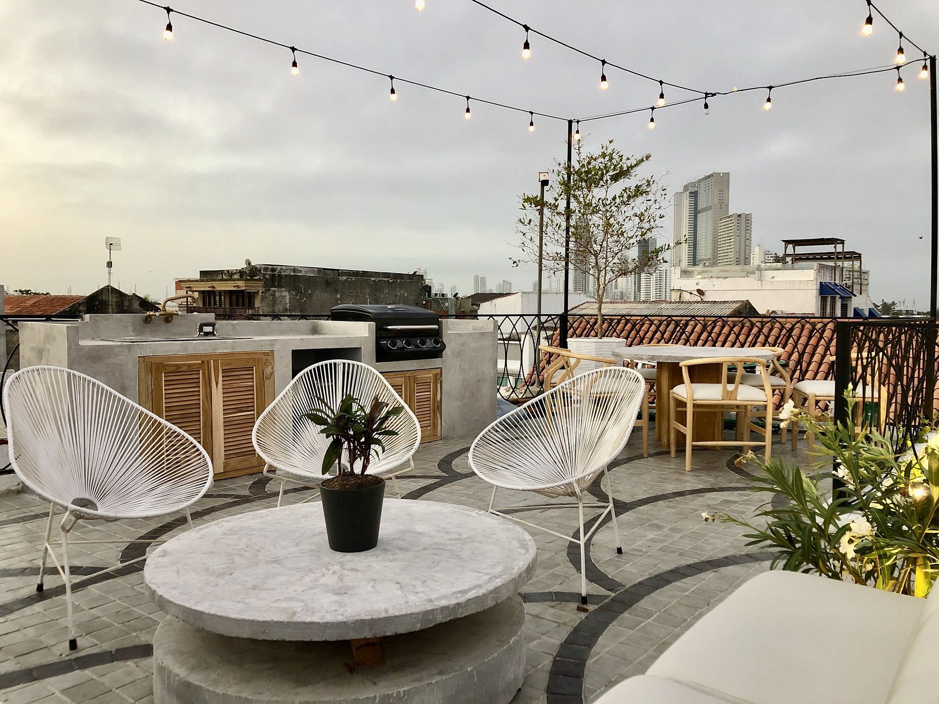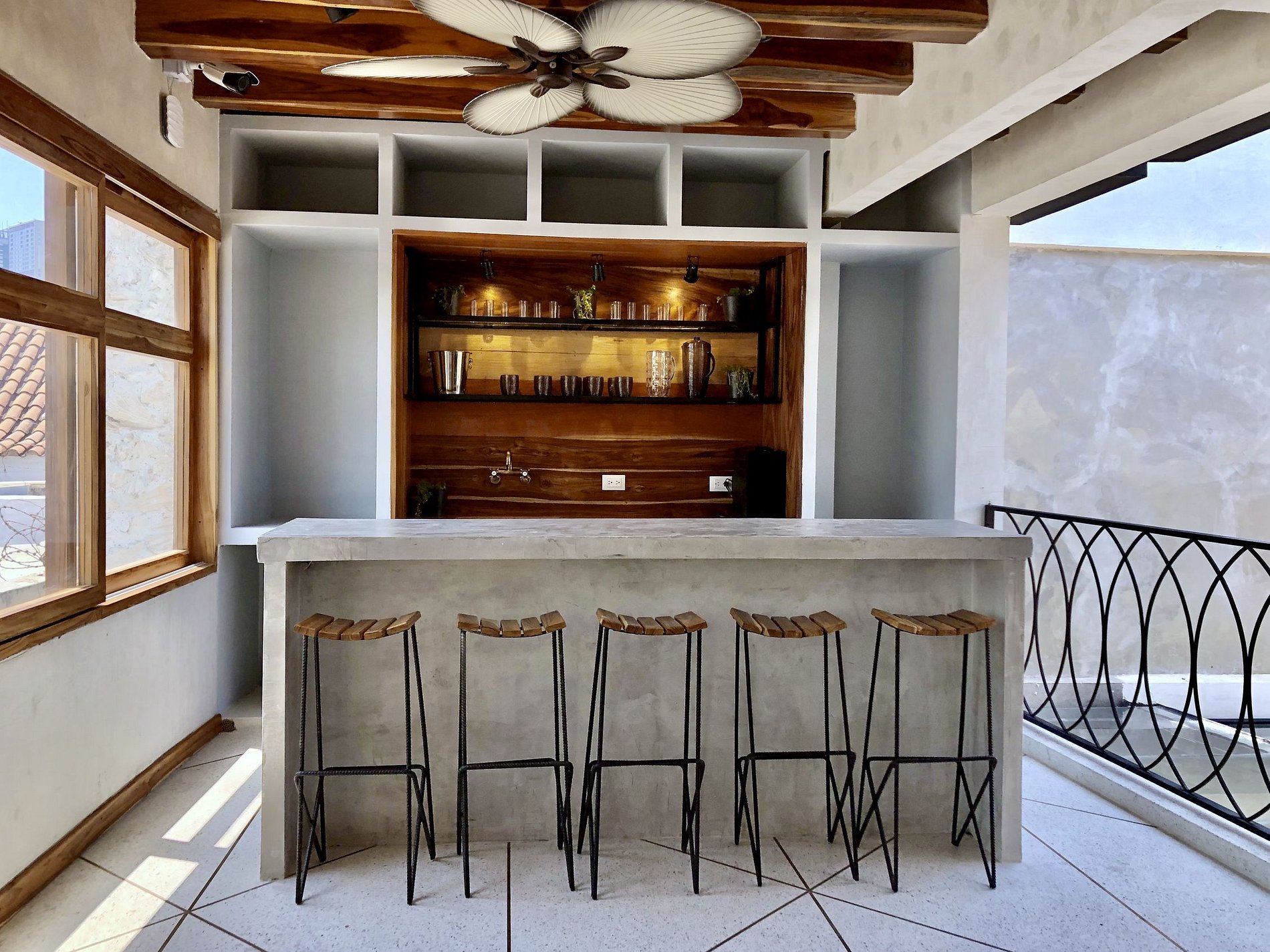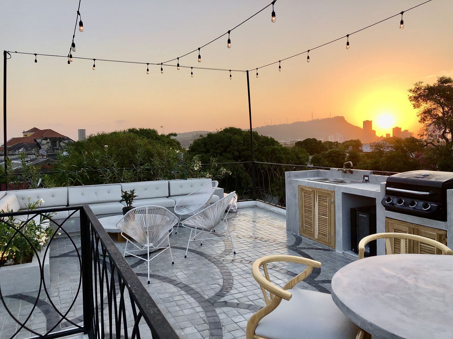 En el último piso, la terraza es donde se ubica el asador con sofá, mesas y sillas y un sistema de sonido apto para celebraciones y reuniones entre amigos y familiares, además de la increíble vista del centro histórico desde el amanecer hasta el atardecer.