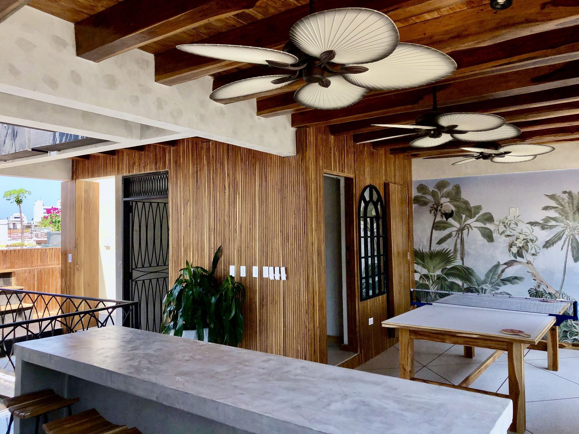 En el tercer piso se encuentra la sala de juegos y un bar con área de televisión y acceso a la alberca en un ambiente diáfano y aireado con una hermosa vista de la ciudad.