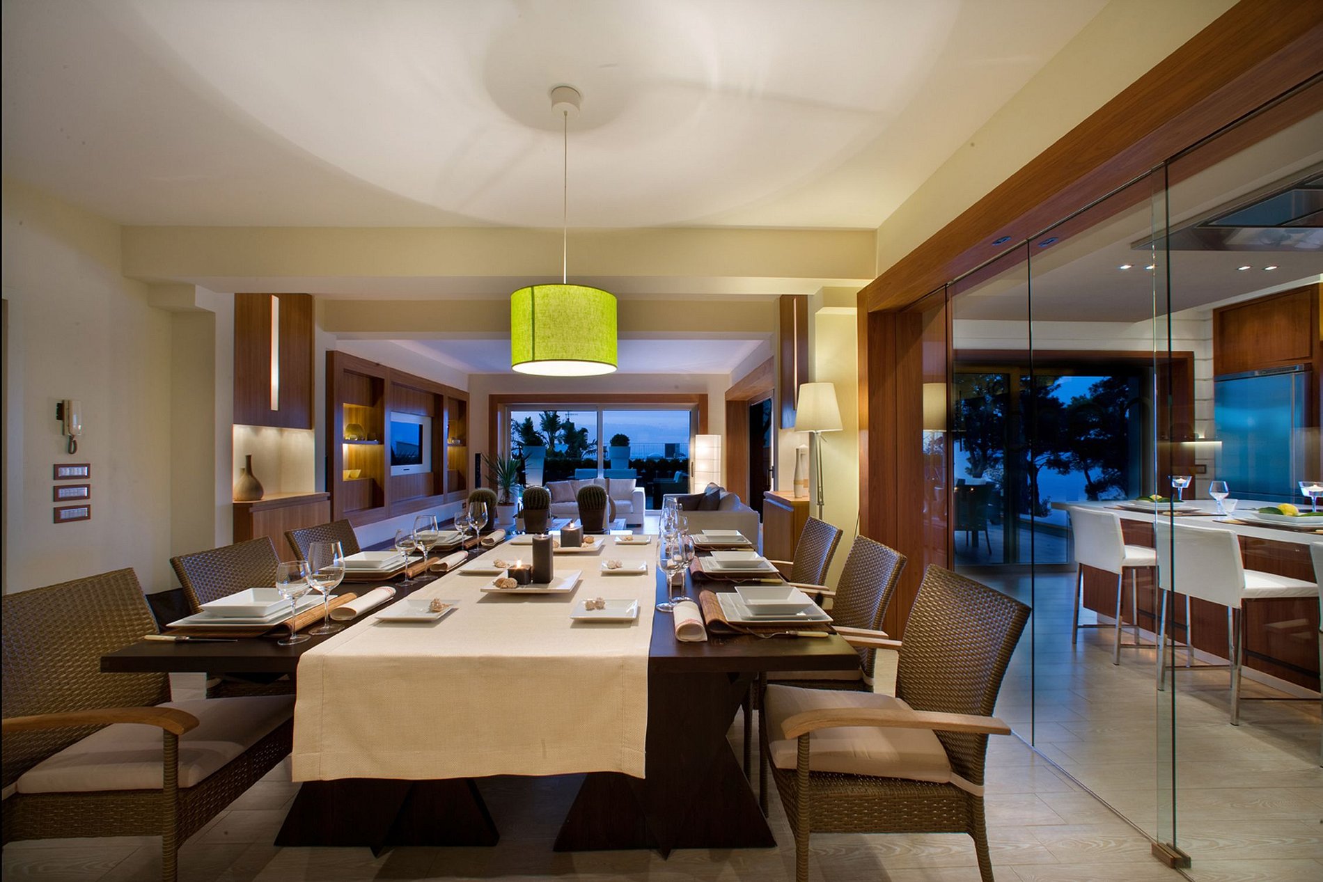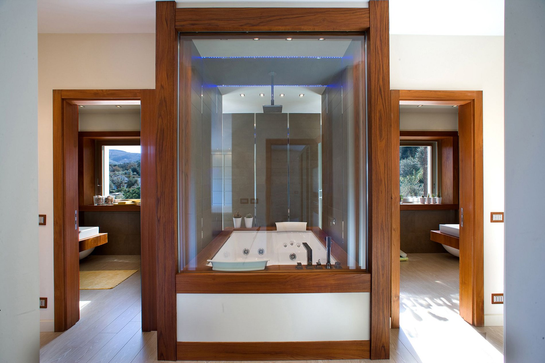Los interiores están llenos de luz y cuentan con todas las comodidades modernas. Construida en dos plantas y dividida en el área principal y un anexo independiente, la iluminación tenue, los colores naturales brillantes, del marrón oscuro al crema y el blanco, así como su variación de materiales, desde la cerámica hasta la madera o los textiles, resaltan la cuidada distribución de la propiedad.