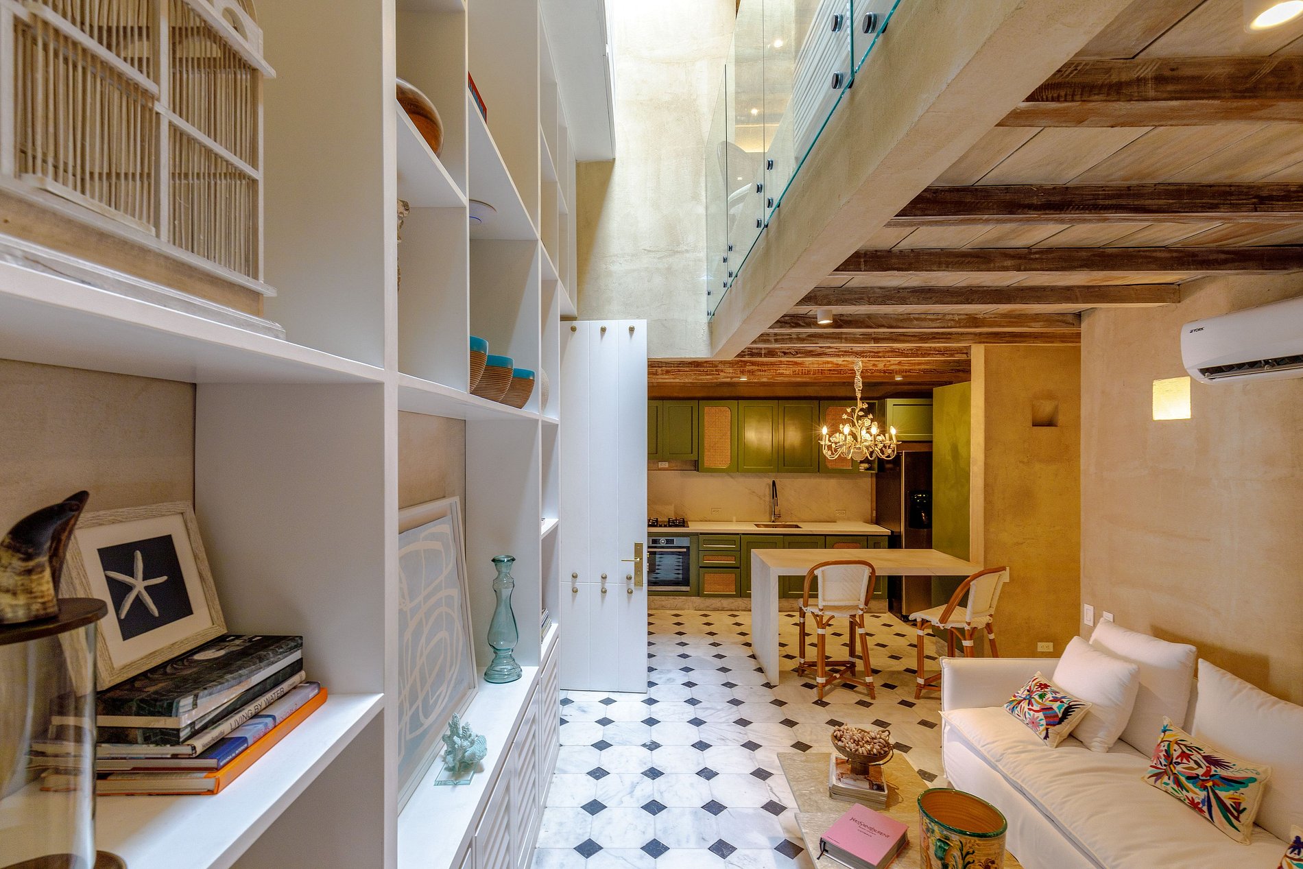 Ubicado en el corazón del centro histórico de Cartagena, este apartamento dúplex combina perfectamente el confort moderno con un toque de encanto colonial. Recientemente remodelado, el apartamento presenta una decoración contemporánea con tonos beige y marrón, complementados con toques vibrantes de color que aportan carácter y estilo.