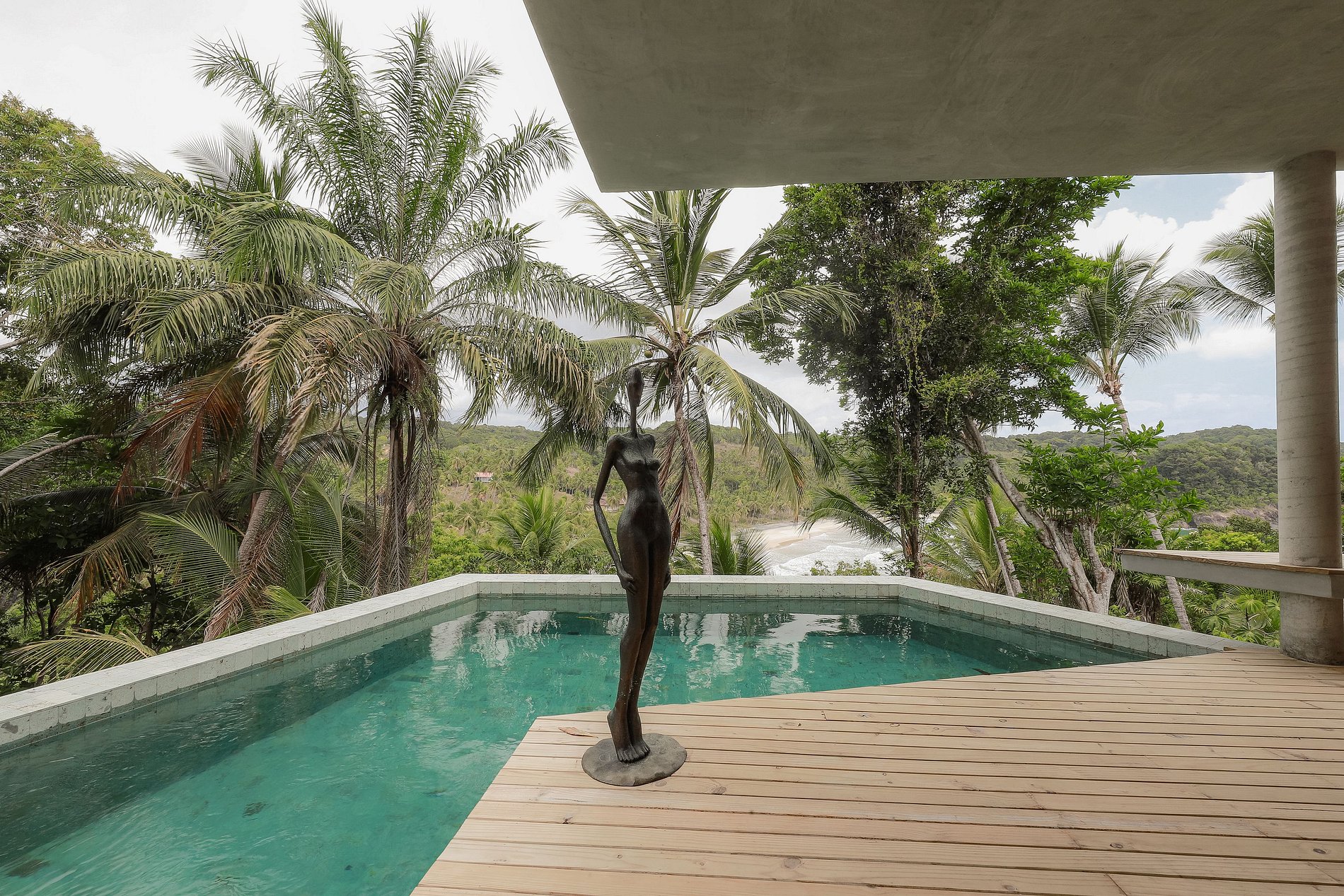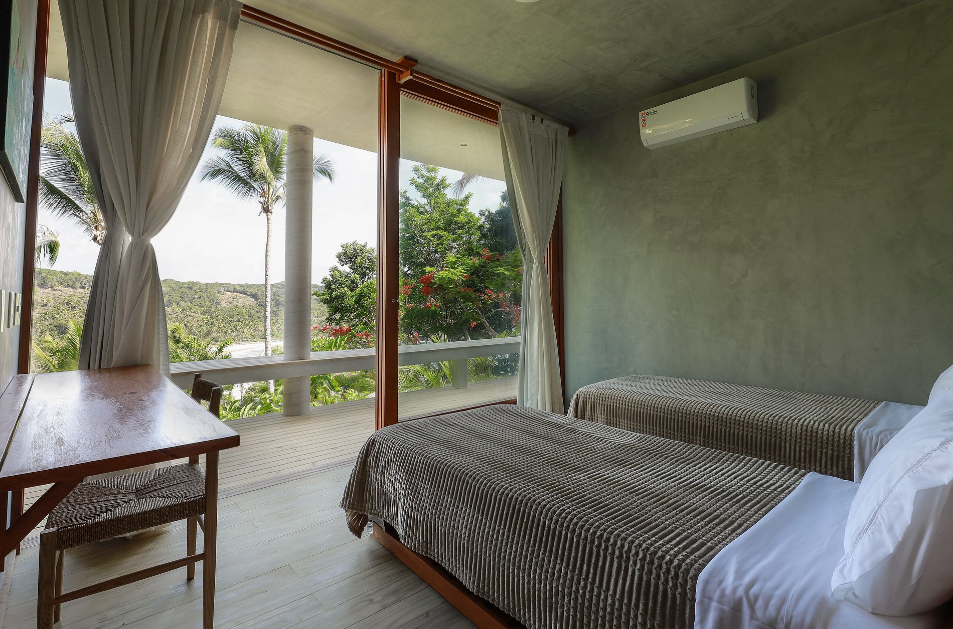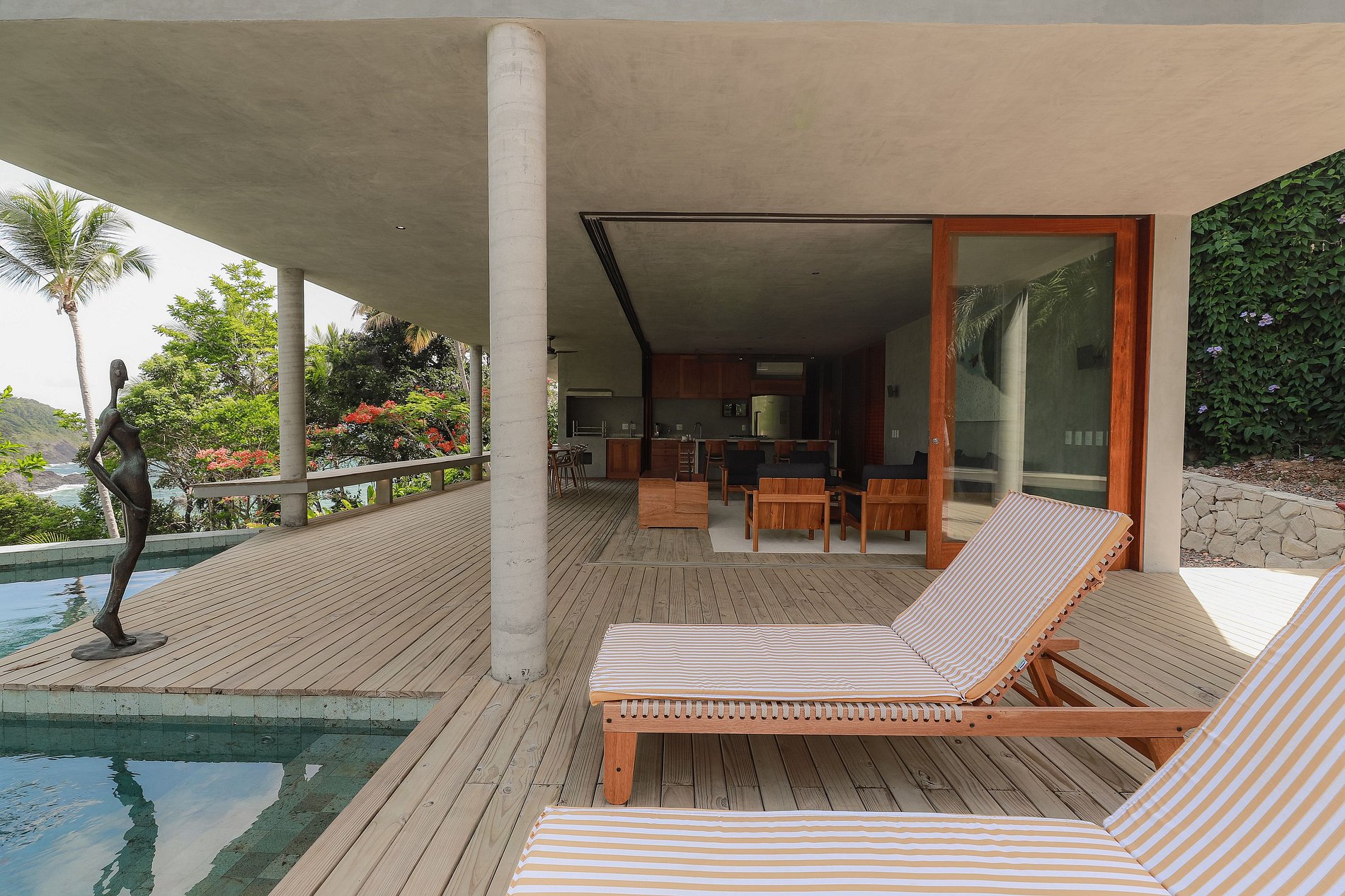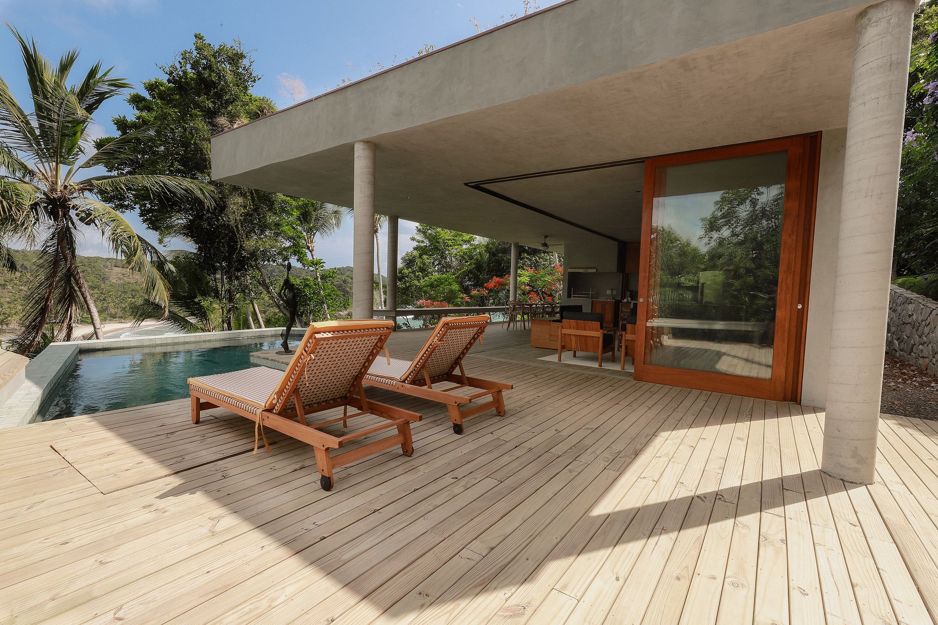 La posición elevada de la casa también le brinda la ventaja de disfrutar de una brisa suave y constante. Disfrutará del servicio de la casa por parte del personal eficiente y alegre disponible las 8 horas del día. Los dos empleados de la casa pueden servirle el desayuno y el almuerzo en la gran terraza cubierta, organizar una barbacoa con una de las mejores vistas de la región o simplemente preparar una caipirinha hecha con seriguela, anacardo o cacao de la región.