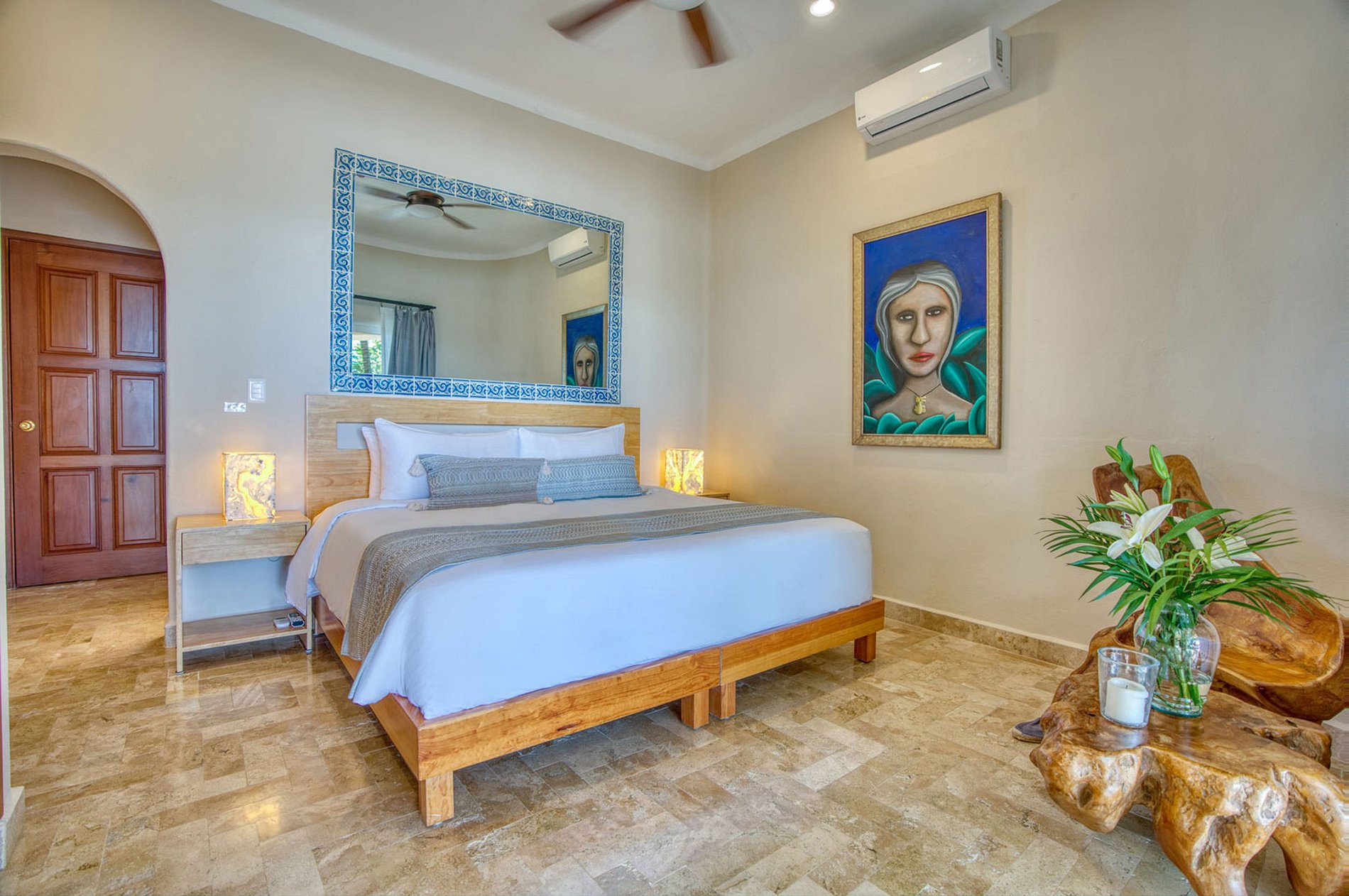 Las habitaciones de la propiedad están decoradas con delicadeza en un estilo clásico mexicano, similar a las salas de estar de planta abierta. Las 2 habitaciones de arriba tienen sus propios balcones, creando el escenario perfecto para que los huéspedes vean la maravilla natural de la puesta de sol de Riviera, cuyo toque ocre solo puede hacer que la villa esté más cerca de su corazón. Esta mansión de playa de 5 dormitorios es un lugar único donde vivirás experiencias que serán recordadas para siempre.