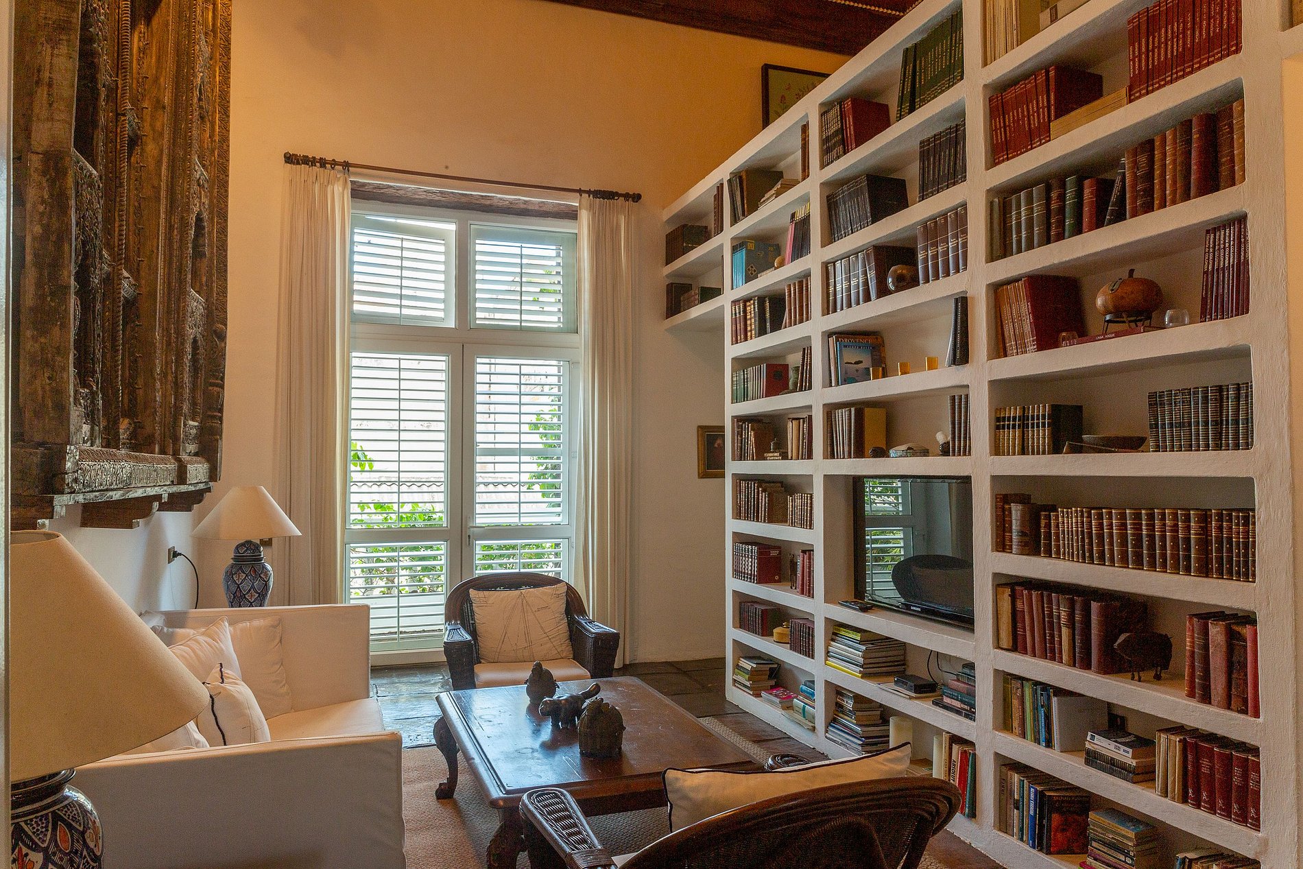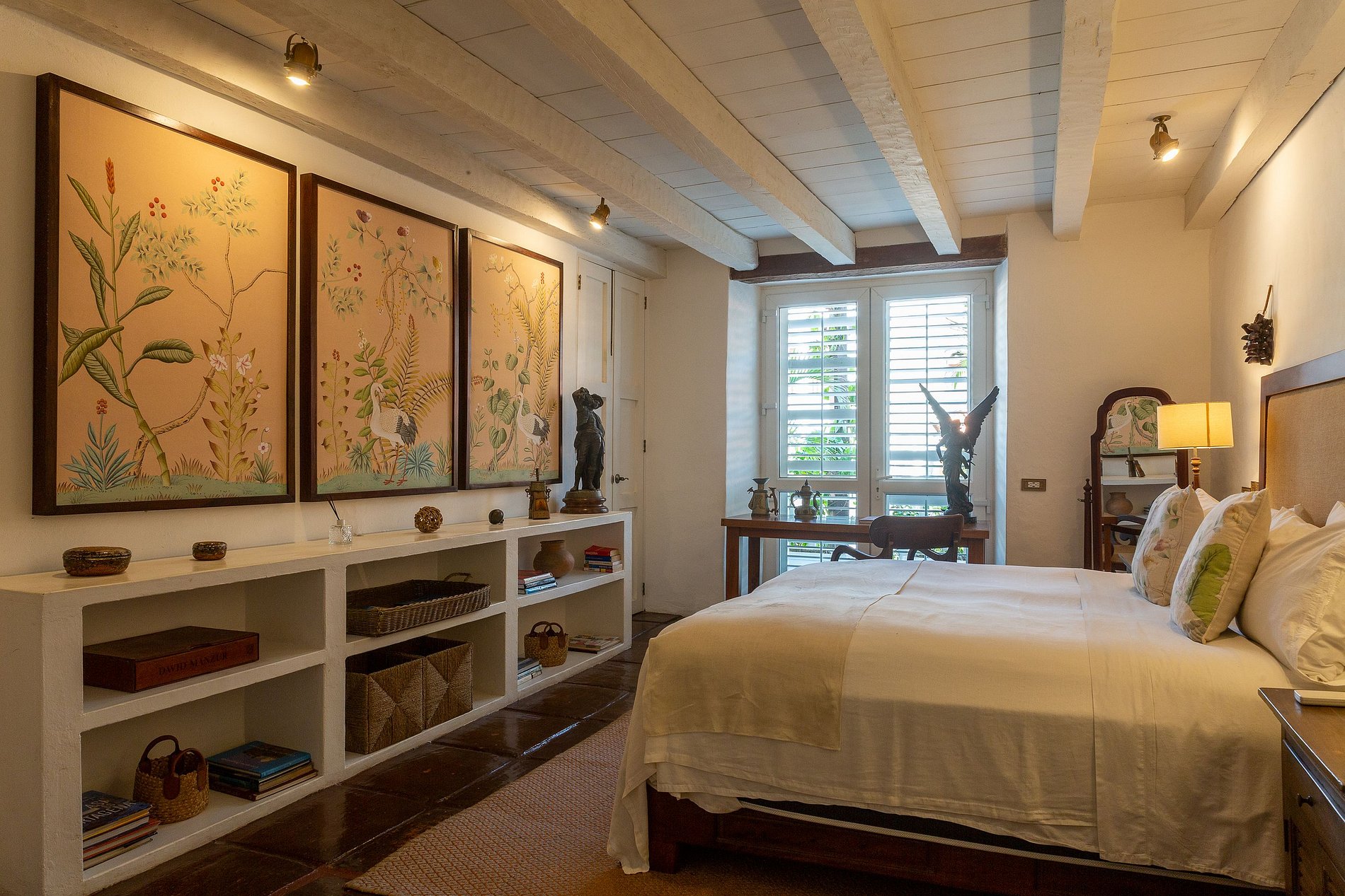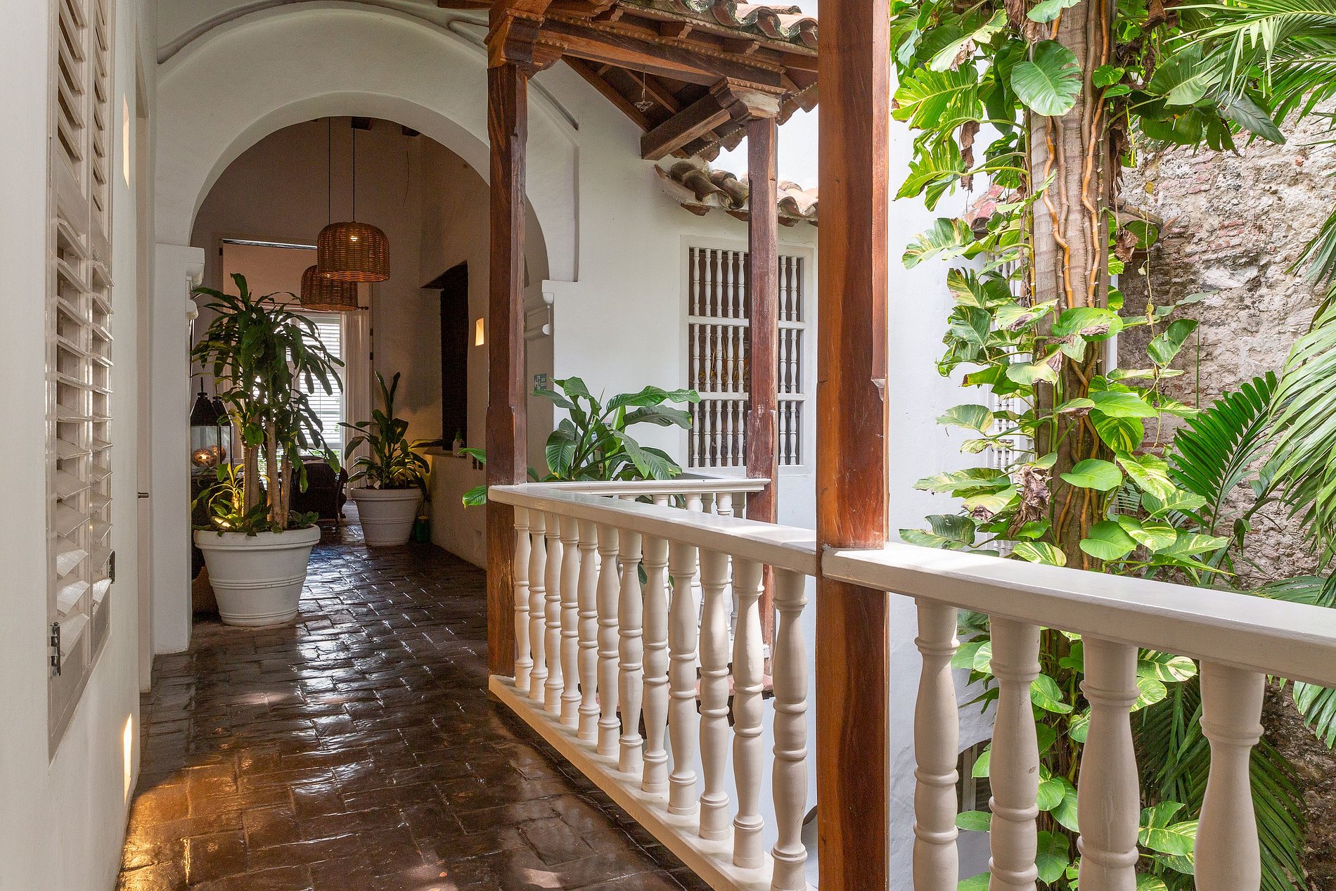 - Segundo Piso: Habitaciones Lujosas El segundo piso alberga seis amplias y únicas habitaciones decoradas con estilo, incluyendo una suite dúplex que puede acomodar hasta cuatro huéspedes. Cada habitación está diseñada pensando en el estilo y la comodidad, ofreciendo ropa de cama de algodón de lujo, toppers de colchón de plumas, aire acondicionado, TV satelital de 43', caja fuerte, artículos de tocador de lujo, batas de seda y secador de pelo. Algunas habitaciones cuentan con balcones con vistas encantadoras a las coloridas calles de Cartagena o al sereno jardín interno. El desayuno está incluido.