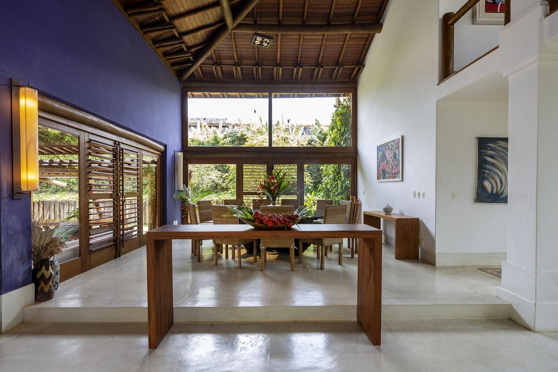Diseñada por David Bastos, esta casa de estilo "granja-tropical" ofrece un fantástico espacio con mucha iluminación natural, mucho contacto con la naturaleza alrededor y dentro de la casa, con amplias aréas externas agradables.