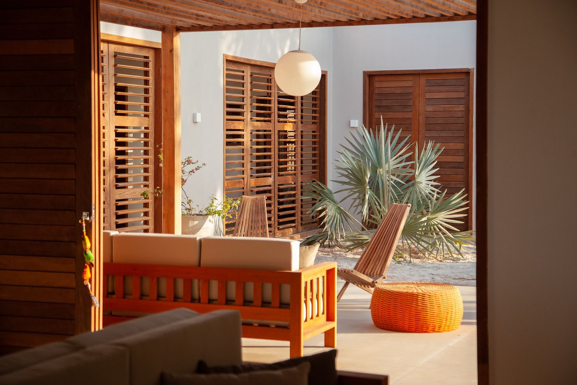 La casa cuenta con varios ambientes que incluyen la sala y el jardín interno. En la azotea de la habitación hay una terraza o solarium para tus aperitivos al atardecer, o incluso disfrutar del bonito cielo estrellado.