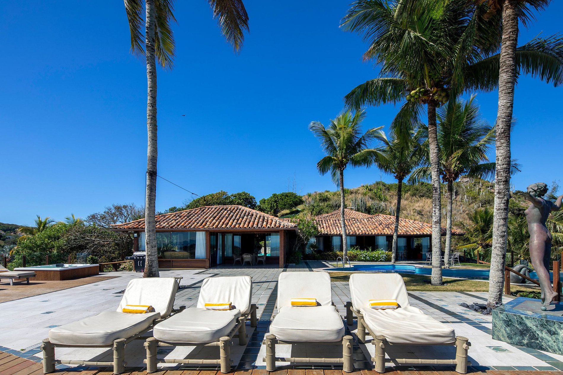 Esta mansión se encuentra dentro de una comunidad cerrada segura y cuenta con 2 plazas de aparcamiento cubiertas. Los ambientes interiores tienen aire acondicionado para crear un ambiente maravillosamente acogedor en los días más cálidos. Y si hace demasiado calor y no quieres quedarte adentro, ¡simplemente date un chapuzón en la piscina o sal a descubrir las hermosas playas de Buzios!
