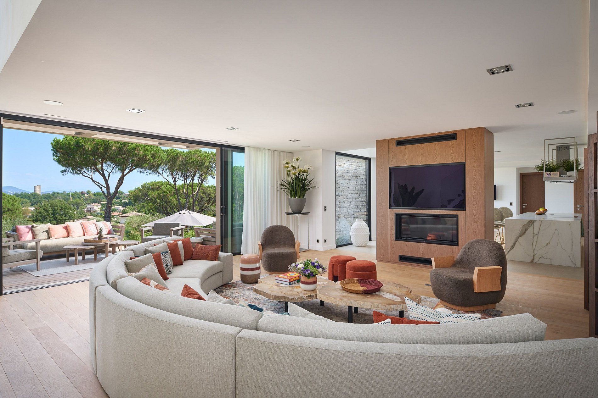 Ubicada en un exclusivo dominio privado con solo tres villas, esta propiedad de reciente construcción se encuentra a pocos minutos del centro de Saint-Tropez, ofreciendo una combinación perfecta de lujo, confort y belleza natural.