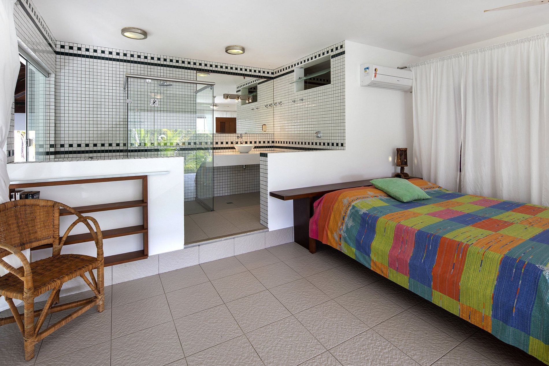 Todas las suites y habitaciones tienen aire acondicionado, ventilador de techo, pie derecho alto con vistas al jardín o al mar.El piso superior donde está ubicado la sala de TV y 4 suites siendo la Master con vista al mar, tiene un gran balcón amueblado alrededor de la casa para momentos privilegiados, lugar ideal para disfrutar del mar, la naturaleza y el hermoso jardín, aprovechando brisa marina refrescante, en una red o confortable tumbonas.
