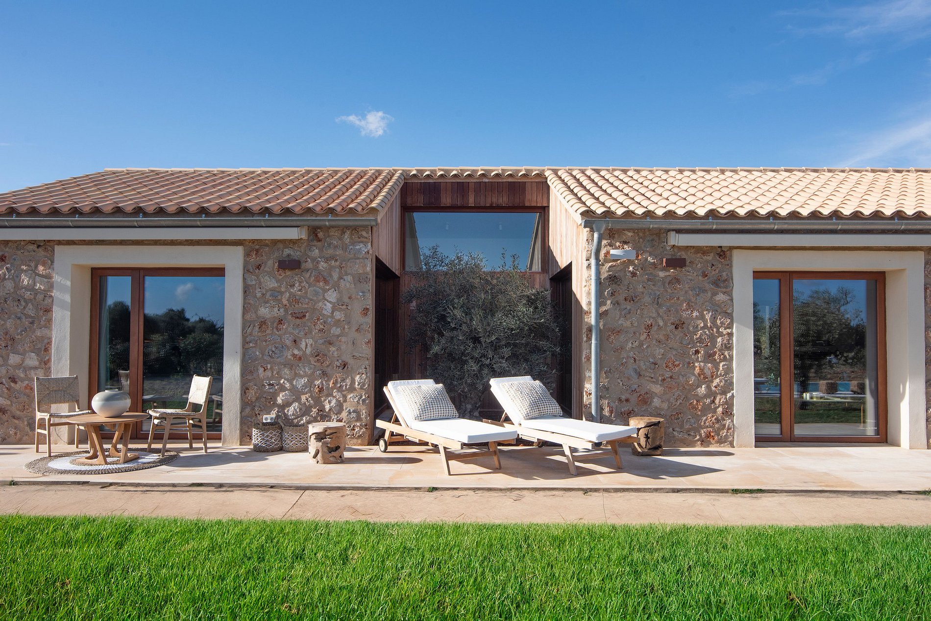 En el exterior, encontrarás amplias terrazas, patios, un jardín de cactus y olivos, una fuente con cascada, una chimenea para barbacoa, áreas de descanso y un tranquilo estanque de agua, creando una armonía entre el interior y el exterior con la naturaleza y la privacidad.