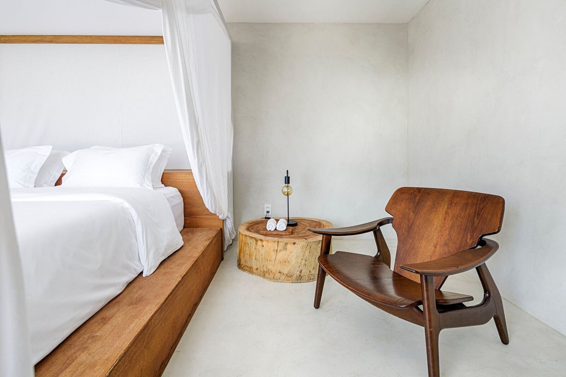 -Recamara principal: Esta suite frente a la alberca cuenta con una cama King Size, aire acondicionado, armario empotrado, acceso a la terraza, jardín y playa.
