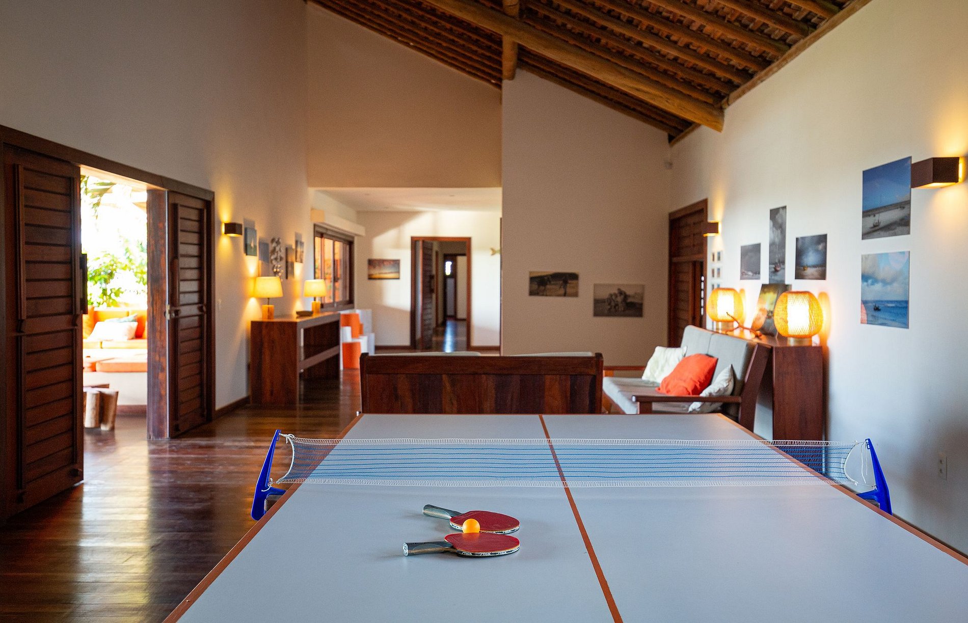 La casa tiene 600m² de área construida, comenzando con la hermosa sala de estar amueblada con todos los muebles de madera y decorada con artesanías locales. La habitación tiene acceso al salón exterior de la casa que cuenta con varias hamacas para el descanso y un hermoso jardín con una gran piscina con cómodas tumbonas.