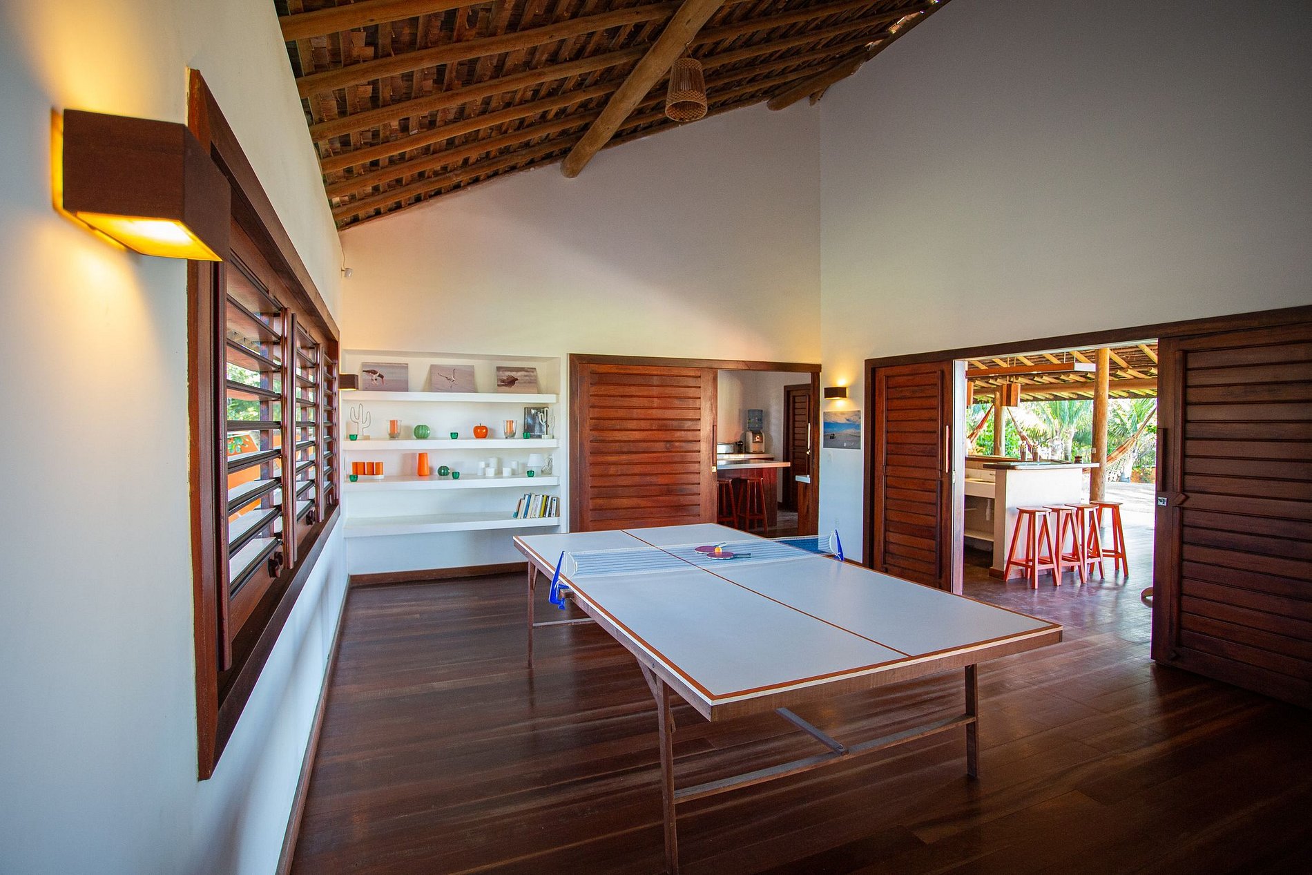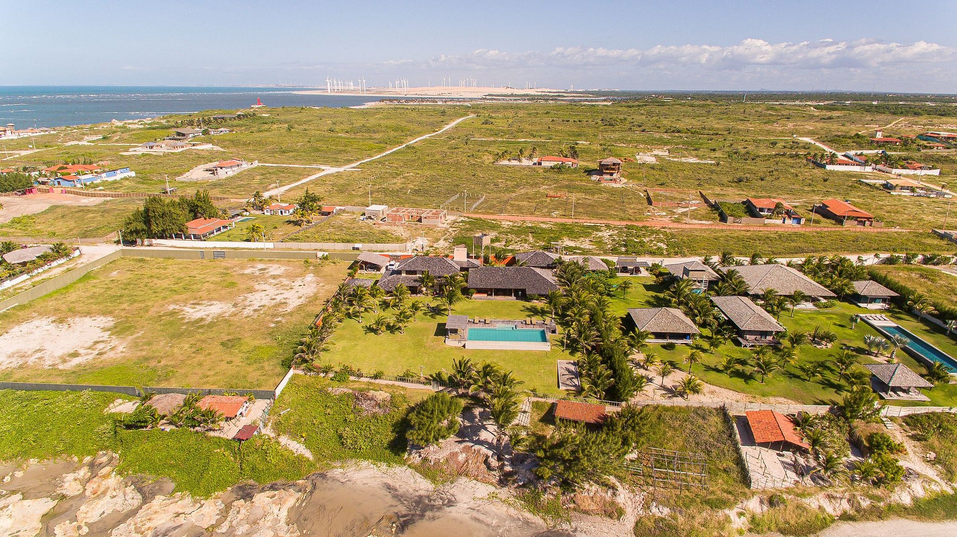 La casa tiene 600m² de área construida, comenzando con la hermosa sala de estar amueblada con todos los muebles de madera y decorada con artesanías locales. La habitación tiene acceso al salón exterior de la casa que cuenta con varias hamacas para el descanso y un hermoso jardín con una gran piscina con cómodas tumbonas.