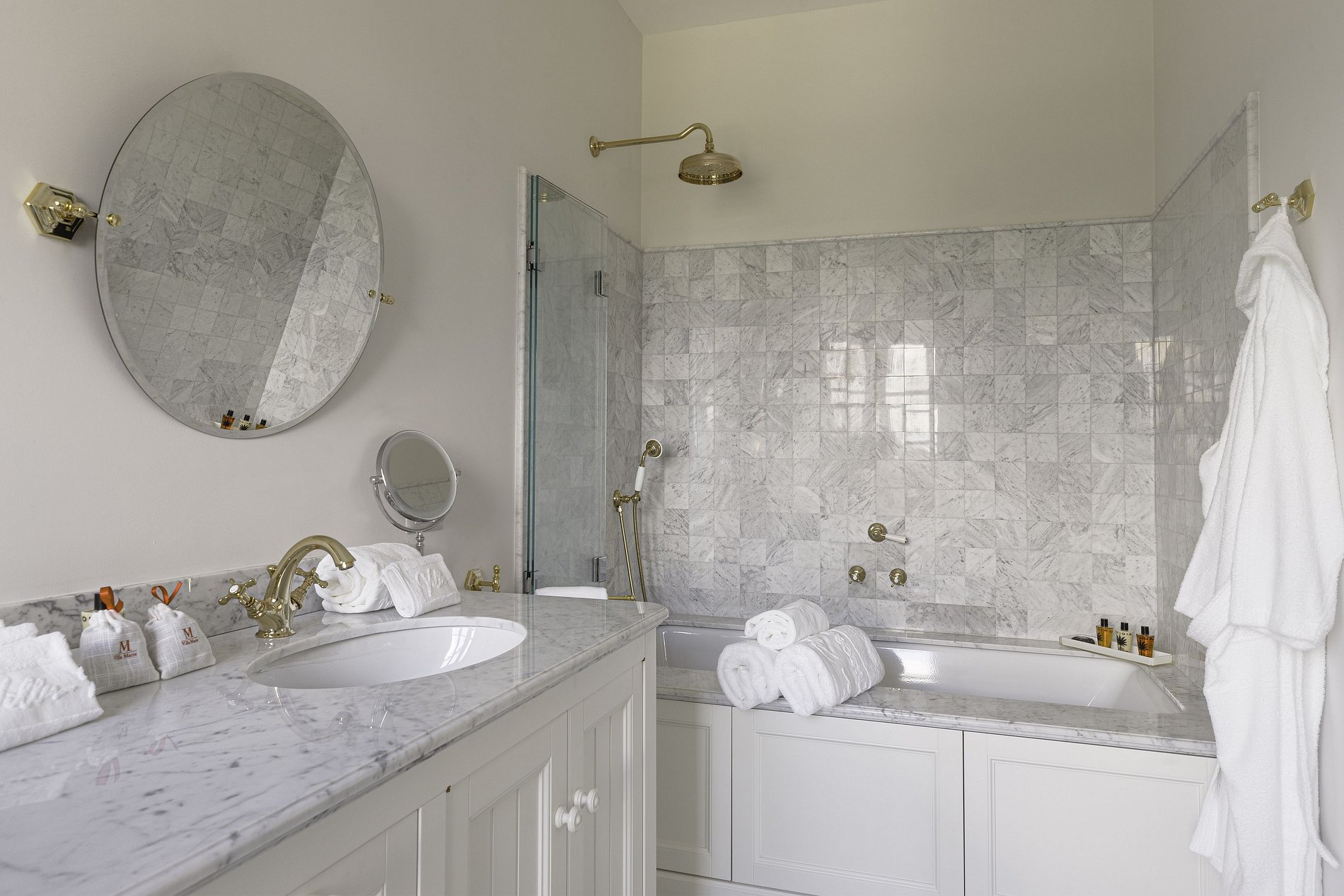 En el interior de la villa, características tradicionales se mezclan con conveniencias modernas, como un ascensor, salones en los tres pisos y un área de spa que incluye una piscina climatizada, sauna, hammam y sala de tratamiento. Seis habitaciones para huéspedes con baño privado, equipadas con camas king o queen-size, esperan a los visitantes.