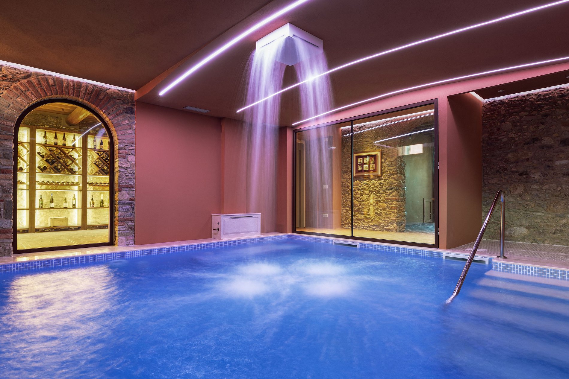 En el interior de la villa, características tradicionales se mezclan con conveniencias modernas, como un ascensor, salones en los tres pisos y un área de spa que incluye una piscina climatizada, sauna, hammam y sala de tratamiento. Seis habitaciones para huéspedes con baño privado, equipadas con camas king o queen-size, esperan a los visitantes.