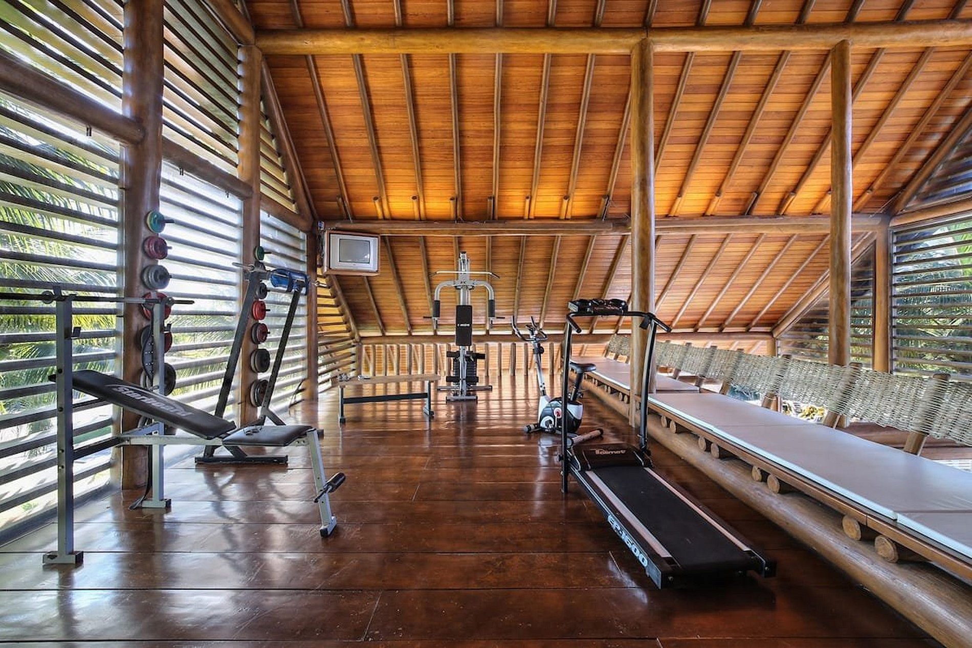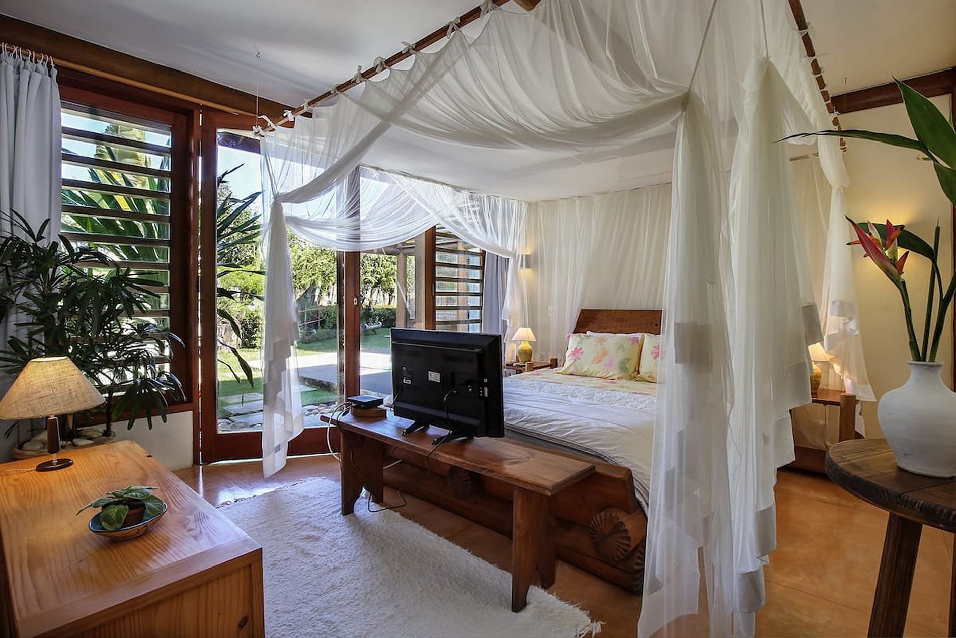 Hay 4 suites más en la planta baja, todas equipadas con aire acondicionado, camas grandes tamaño king, mosquiteros y televisores. La última suite se encuentra en la planta baja y posee una cama de matrimonio y 2 camas individuales, ideal para una familia con 2 niños pequeños.