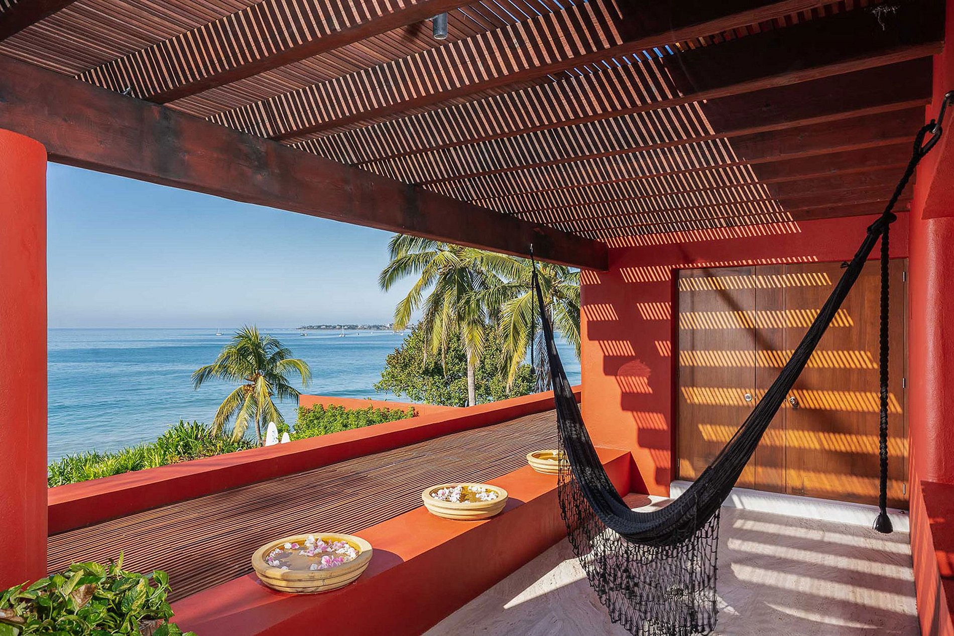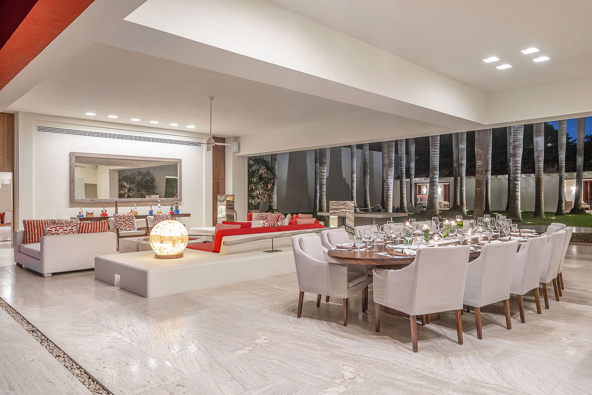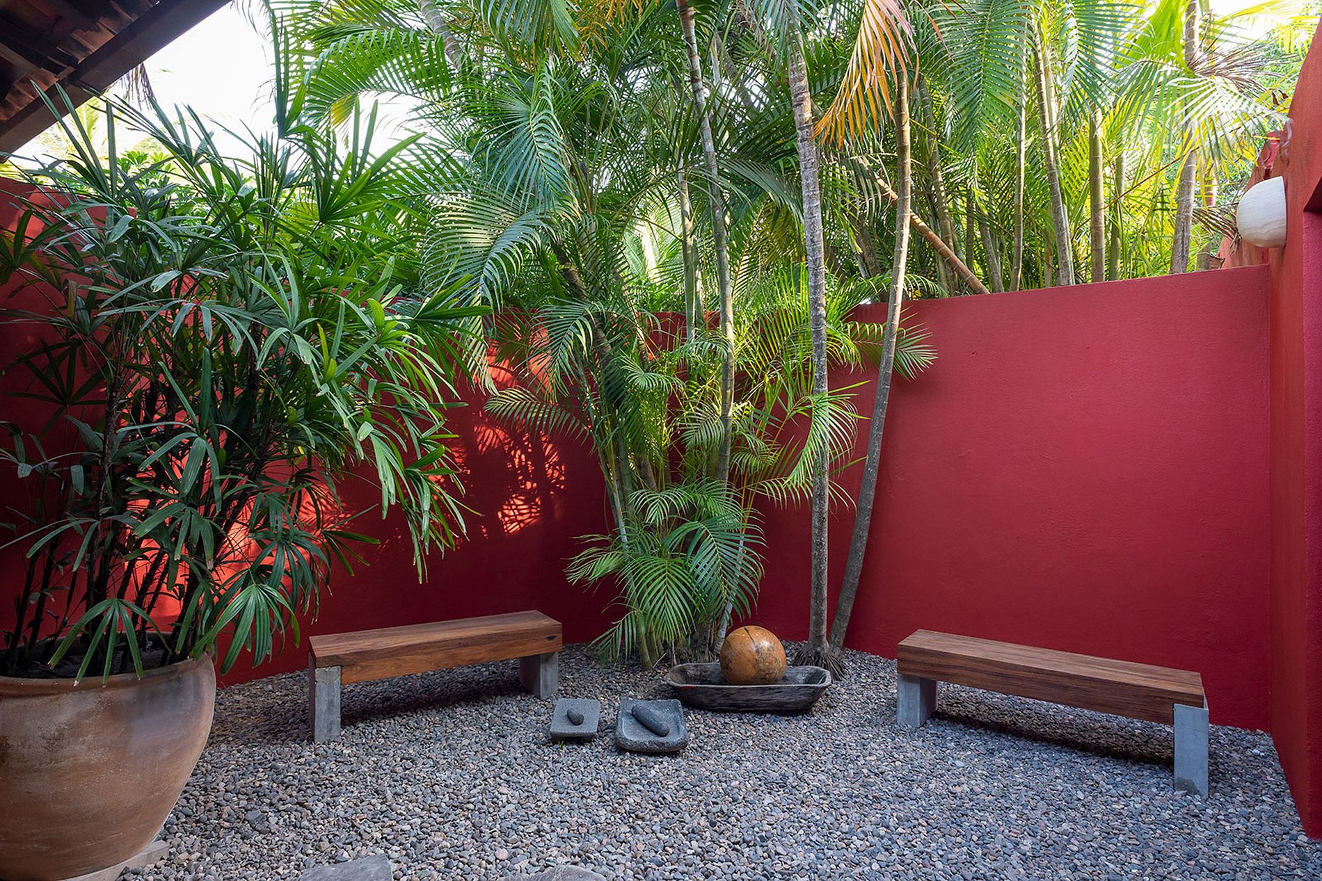 A solo pasos del mar, está la lujosa villa color rojo vivo diseñada por Pepe de Yturbe, la cual resalta por su hermosa arquitectura minimalista, la cual juega con las sombras y espacios que proporciona la naturaleza del lugar. Ubicada en la playa privada de Ranchos Estates, es una de las casas más icónicas de la region.