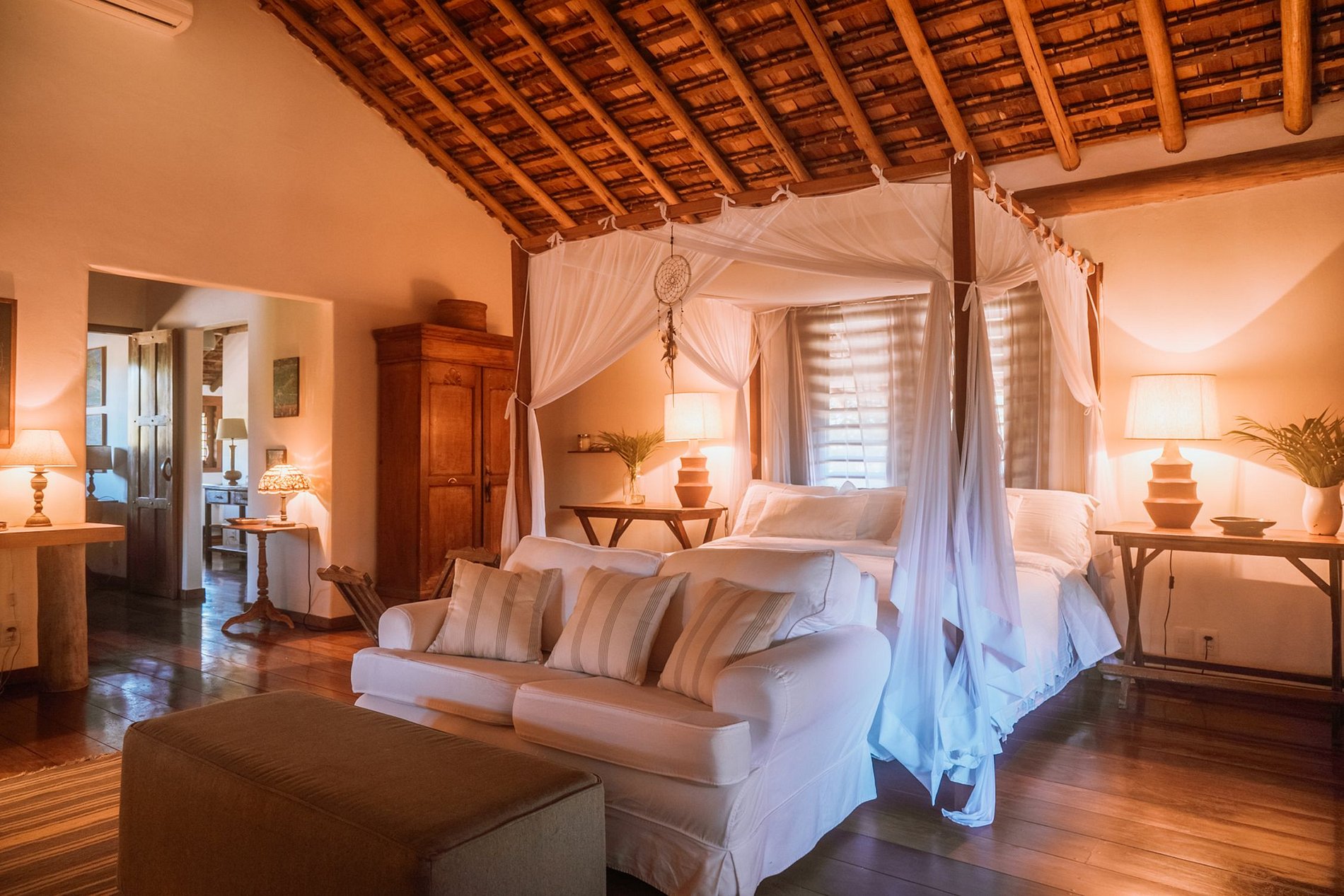 Esta paradisíaca propiedad está ubicada en el condominio Altos de Trancoso, en una parcela de 5.000 metros cuadrados, rodeada de un jardín tropical con una refrescante piscina. Además, cuenta con sauna, regadera, bar / cocina al aire libre y sala de juegos.