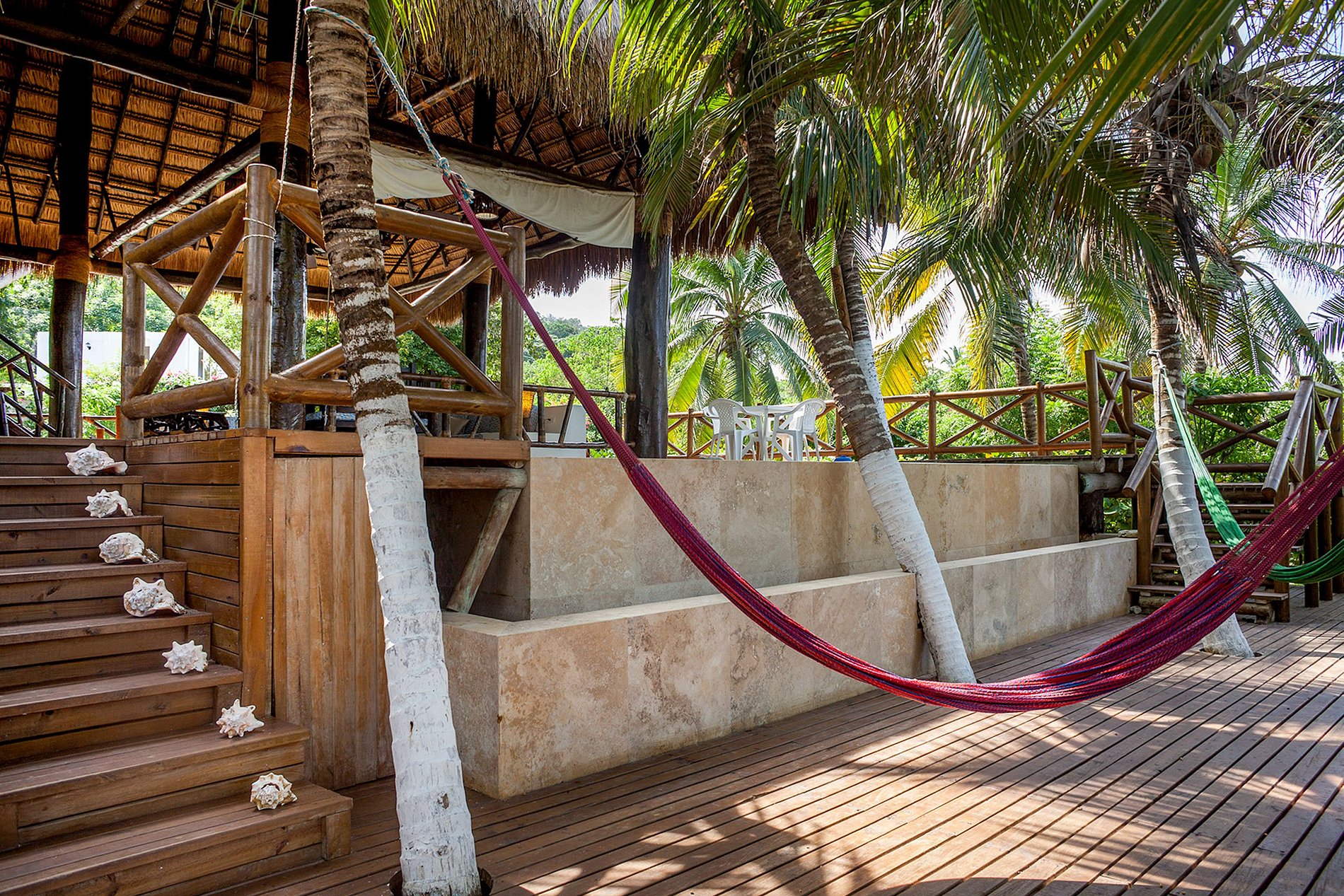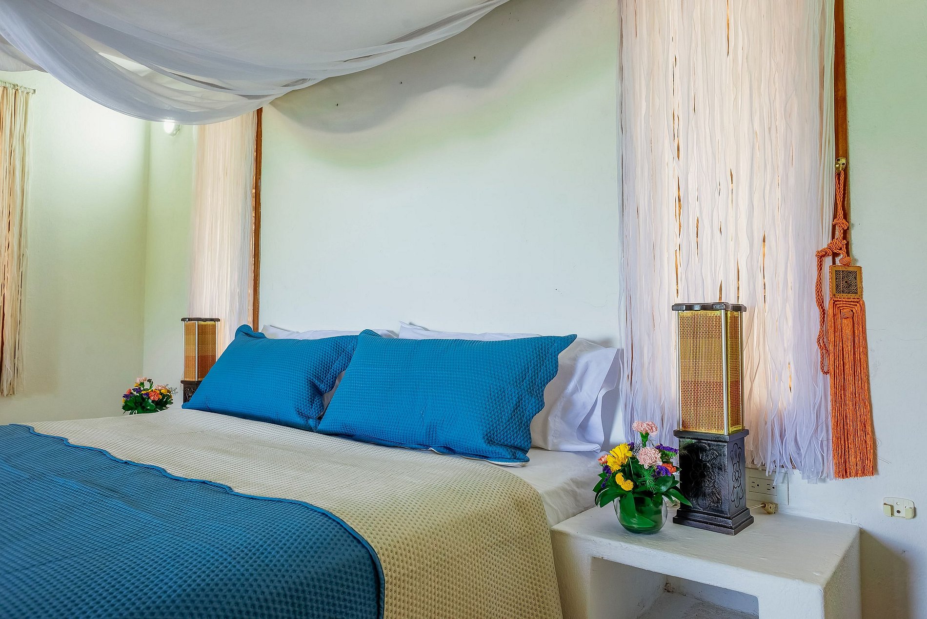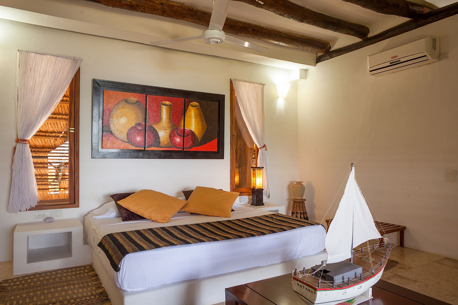 La casa principal tiene 3 cuartos que vienen con aire acondicionado y sus baños privados, así como un altillo con una cama doble, ventiladores y un baño privado. Para grupos que necesiten espacio adicional, existe un apartamento independiente a 50 metros de la casa principal, que cuenta con 2 camas dobles.