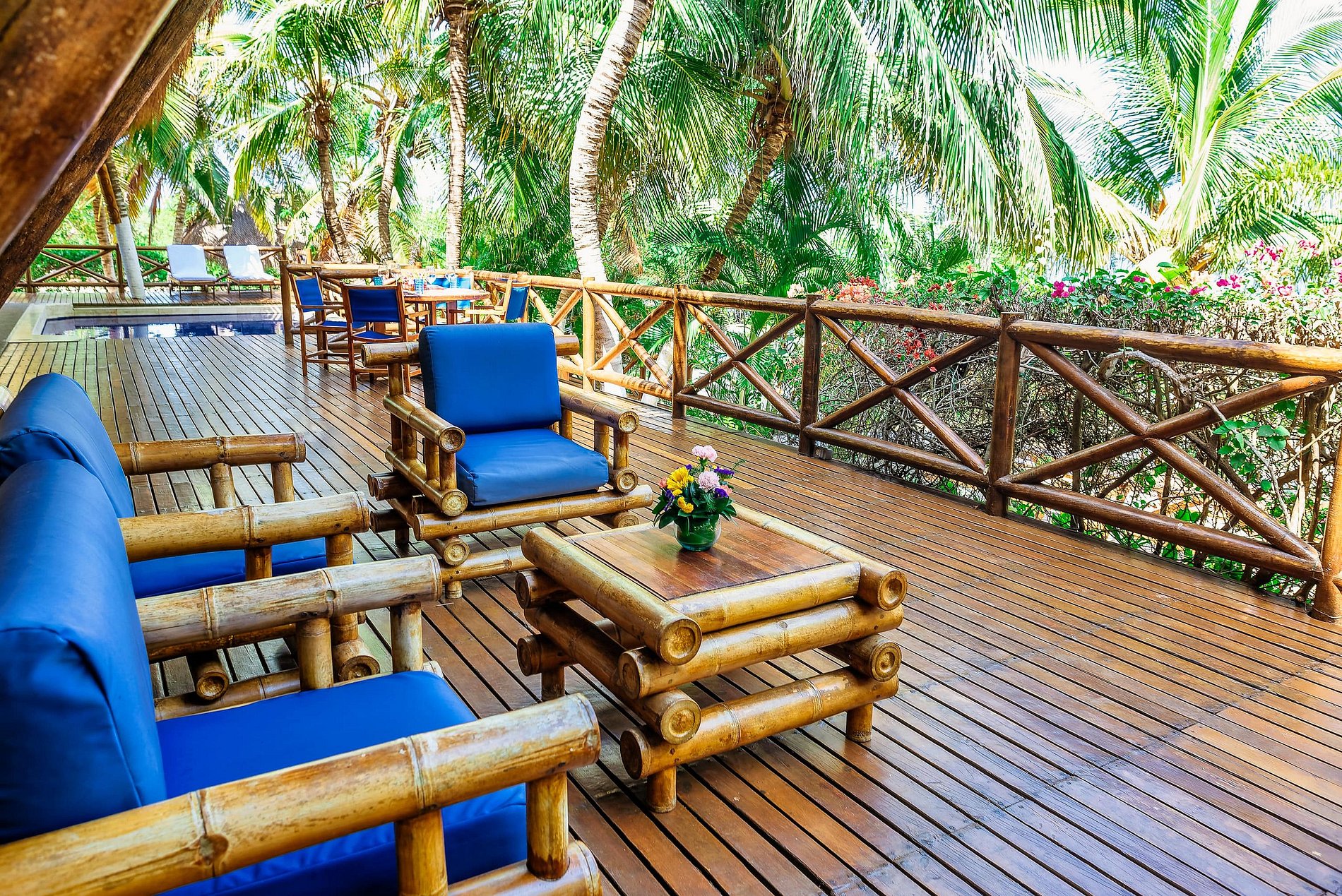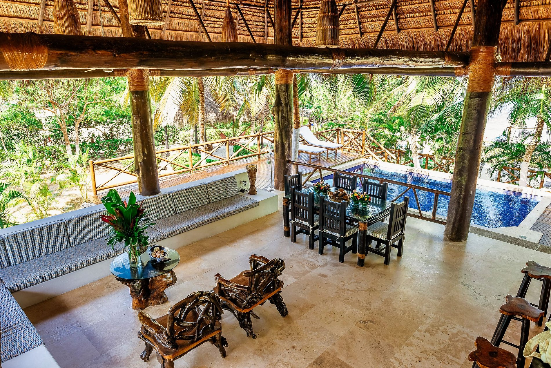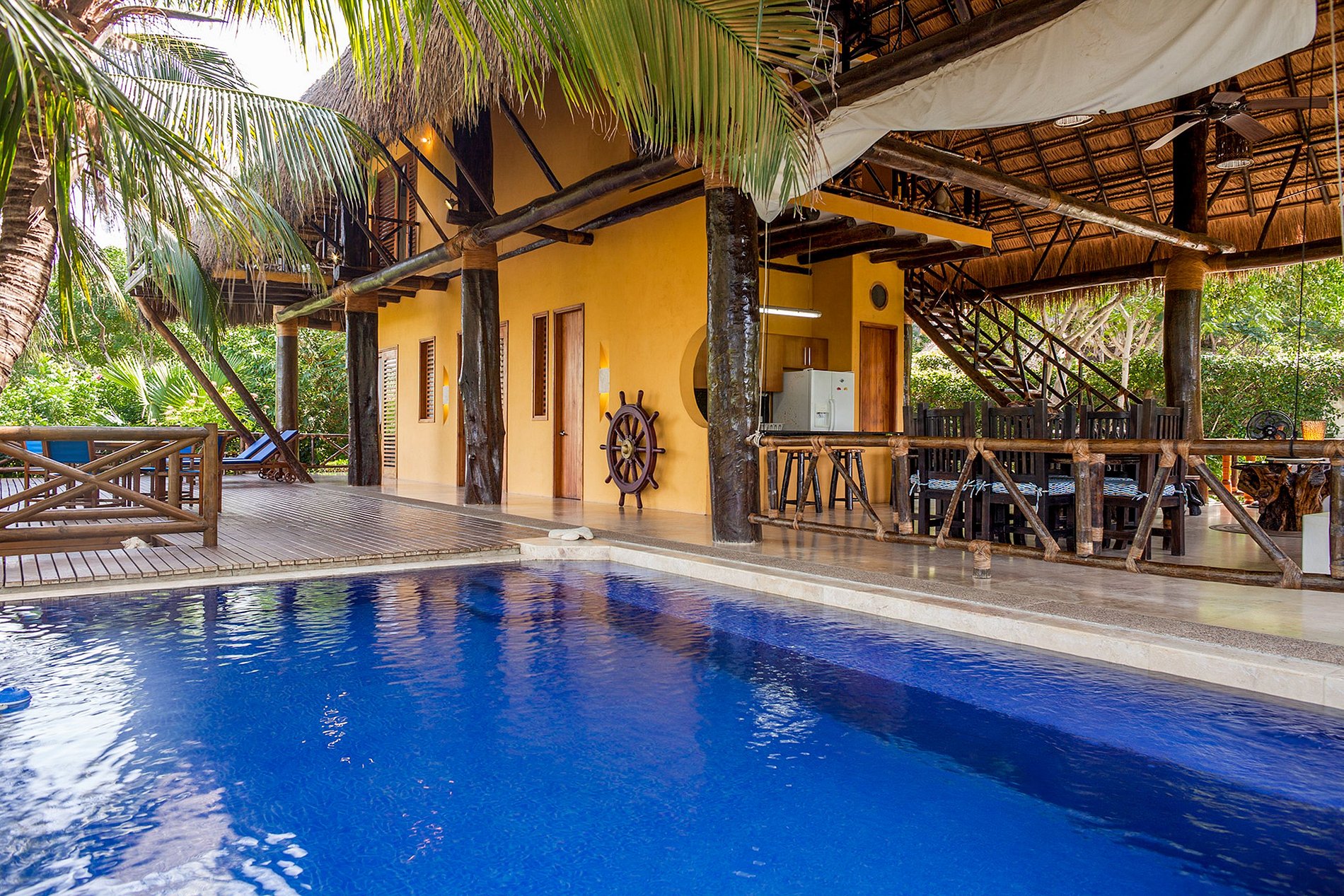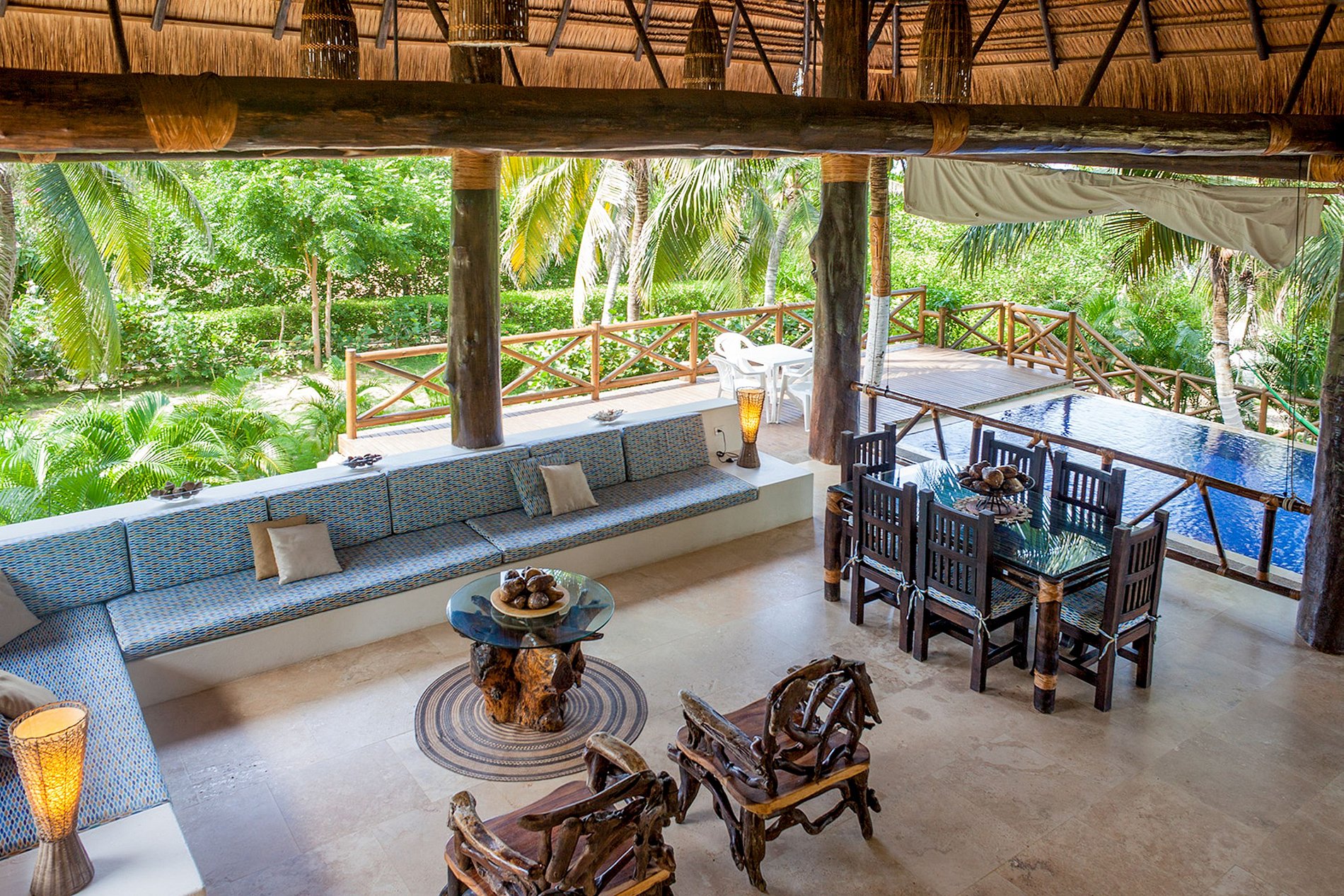 Desde varias áreas de la casa se puede admirar el paisaje con el océano y otras islas cercanas. La playa privada de la villa hará que su estancia sea aún más especial, ya que podrá relajarse en total privacidad y tener su propio punto de partida para deportes acuáticos. Si quiere disfrutar de aguas tranquilas, también puede relajarse en la gran piscina de la villa. Por último, la casa cuenta con una cocina completa, donde nuestros cocineros pueden preparar platos típicos para su grupo.