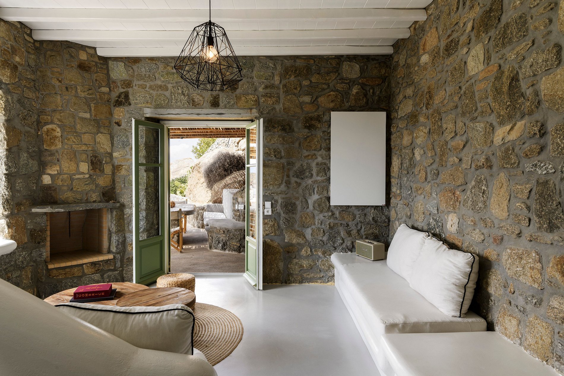 El mercado local más cercano en el pueblo de Ano Mera está a solo cinco minutos en coche de la villa, mientras que la ciudad de Mykonos está aproximadamente a 15 minutos.La playa más lejana es accesible en un máximo de 20 minutos en coche.
