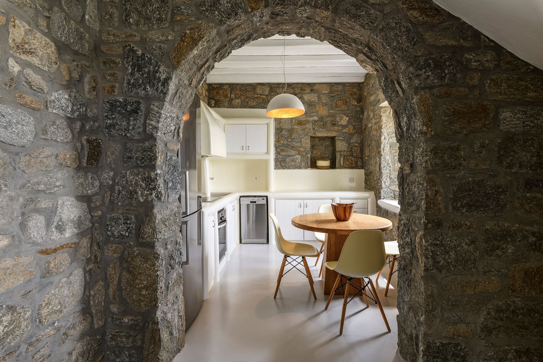 El mercado local más cercano en el pueblo de Ano Mera está a solo cinco minutos en coche de la villa, mientras que la ciudad de Mykonos está aproximadamente a 15 minutos.La playa más lejana es accesible en un máximo de 20 minutos en coche.