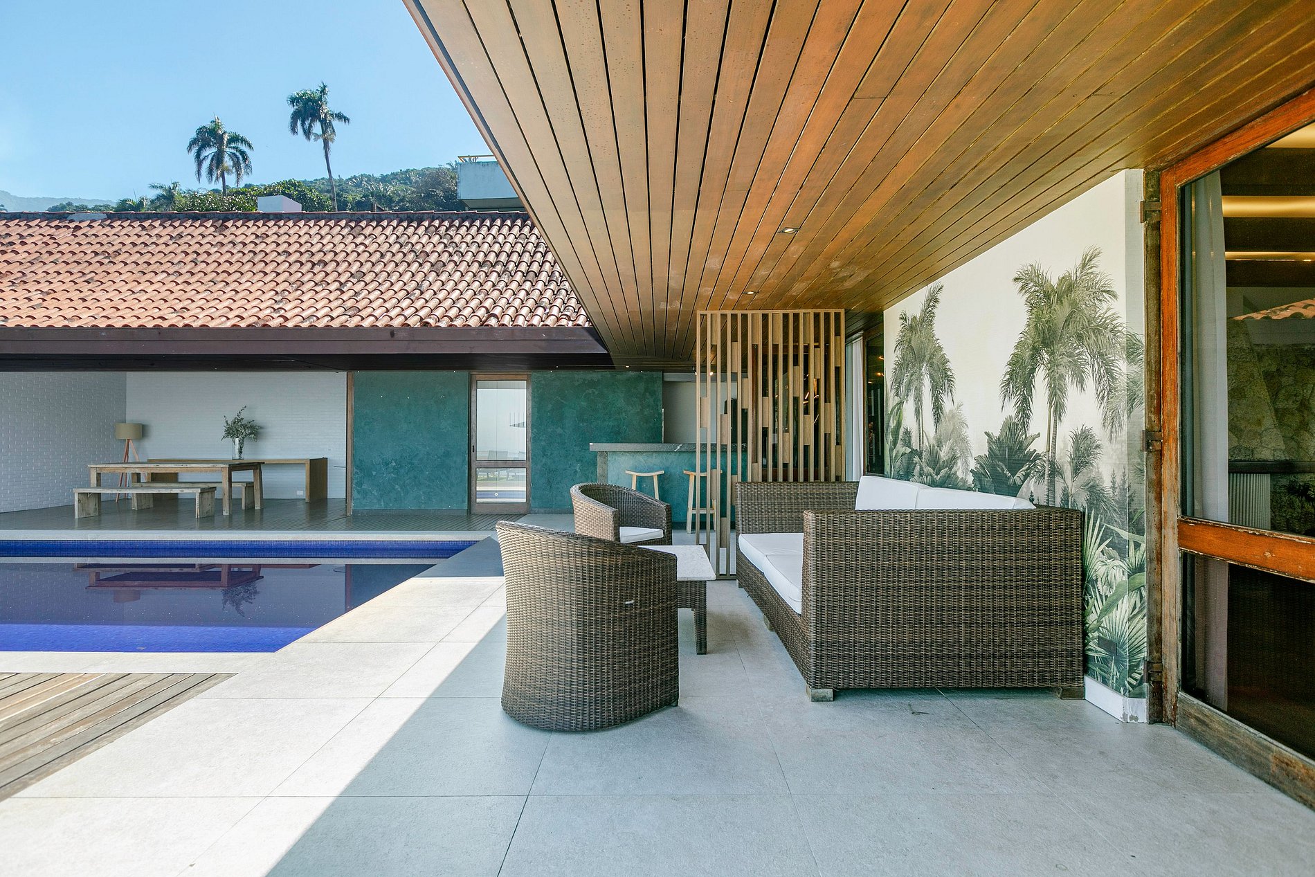 El área exterior de la propiedad es perfecta para entretener a los huéspedes con una gran piscina y un área gourmet. La vista panorámica desde el área exterior es espectacular y hace que la experiencia sea aún más especial. Además, hay tres espacios de estacionamiento cubiertos para garantizar que sus automóviles estén seguros y protegidos.