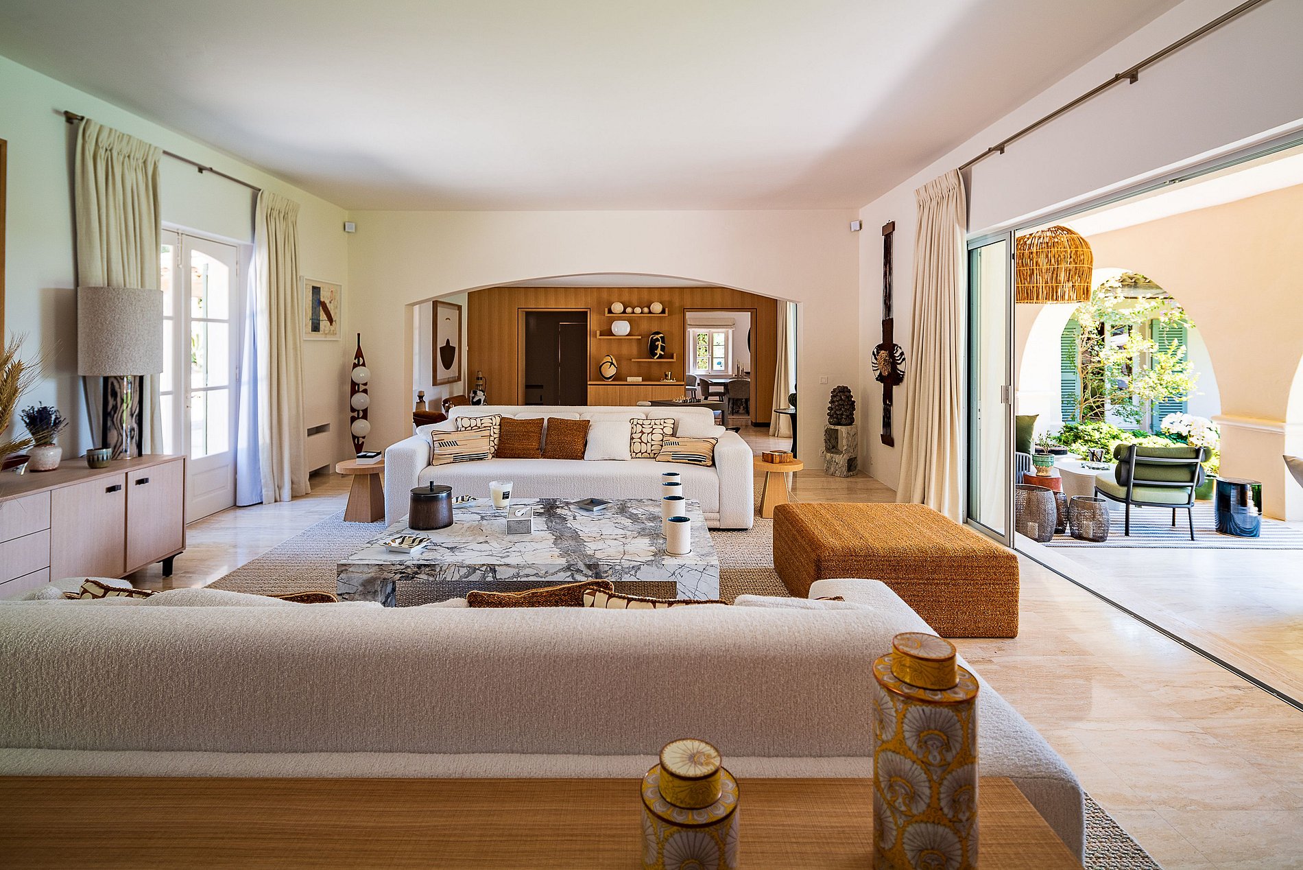 - 2 salones, sistema de sonido Sonos. Gran ventanal que da acceso a los salones exteriores y a la piscina, así como al otro lado un patio (80 m2)