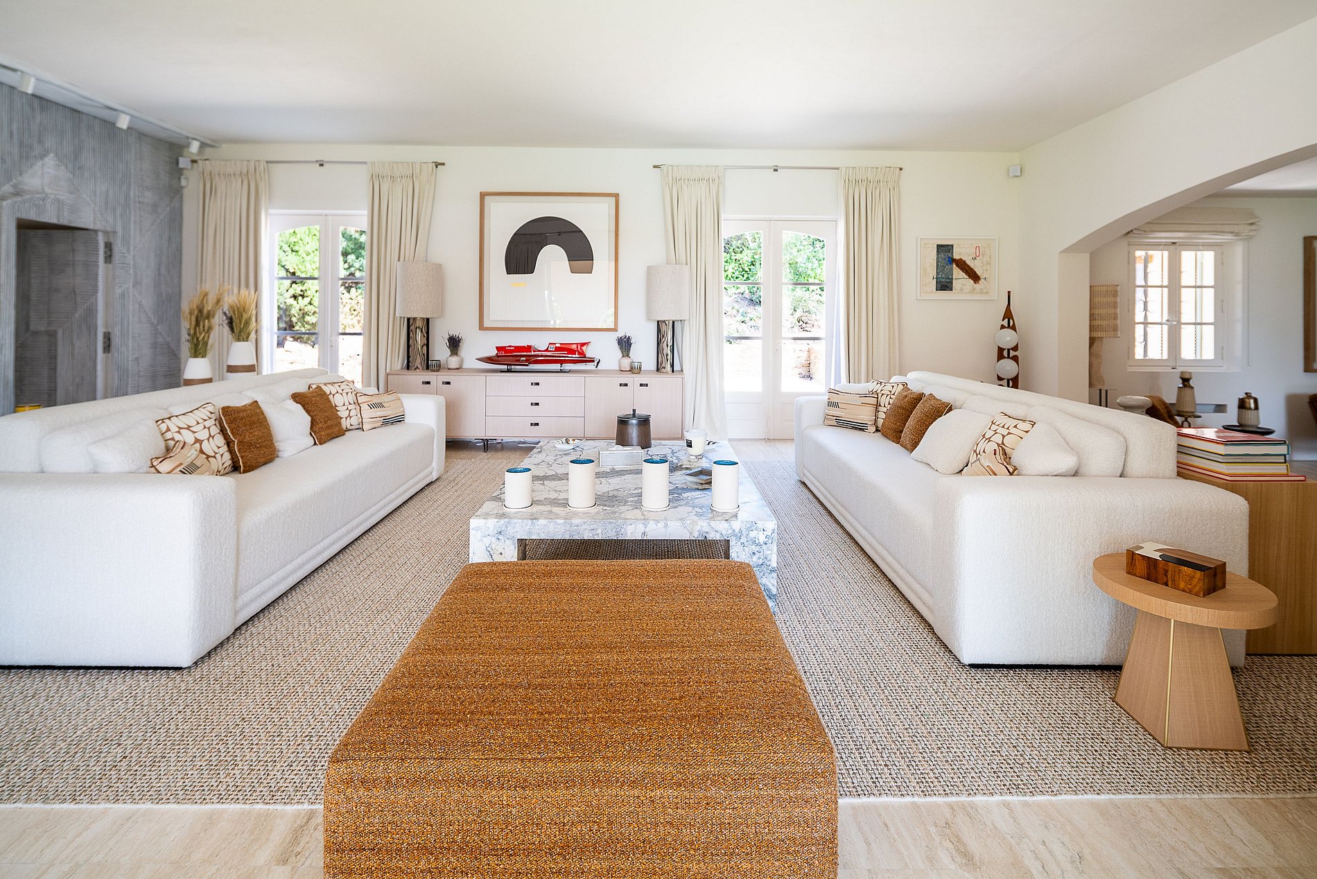 - 2 salones, sistema de sonido Sonos. Gran ventanal que da acceso a los salones exteriores y a la piscina, así como al otro lado un patio (80 m2)