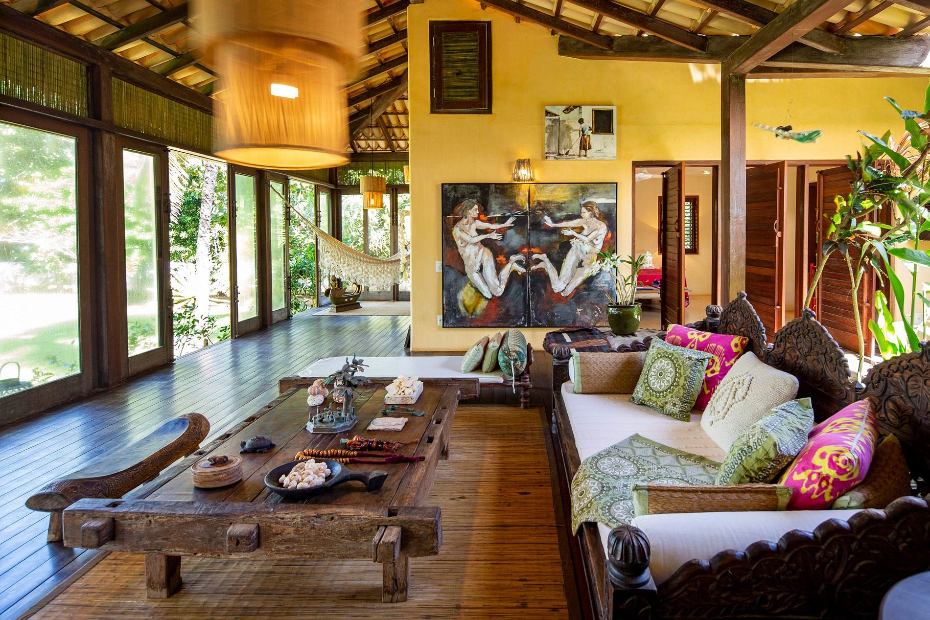 Cerca, la encantadora casa de estilo balinés cuenta con 4 suites que rodean un salón asiático y su jardín interior y hamacas. Lugar extremadamente relajante y amigable.