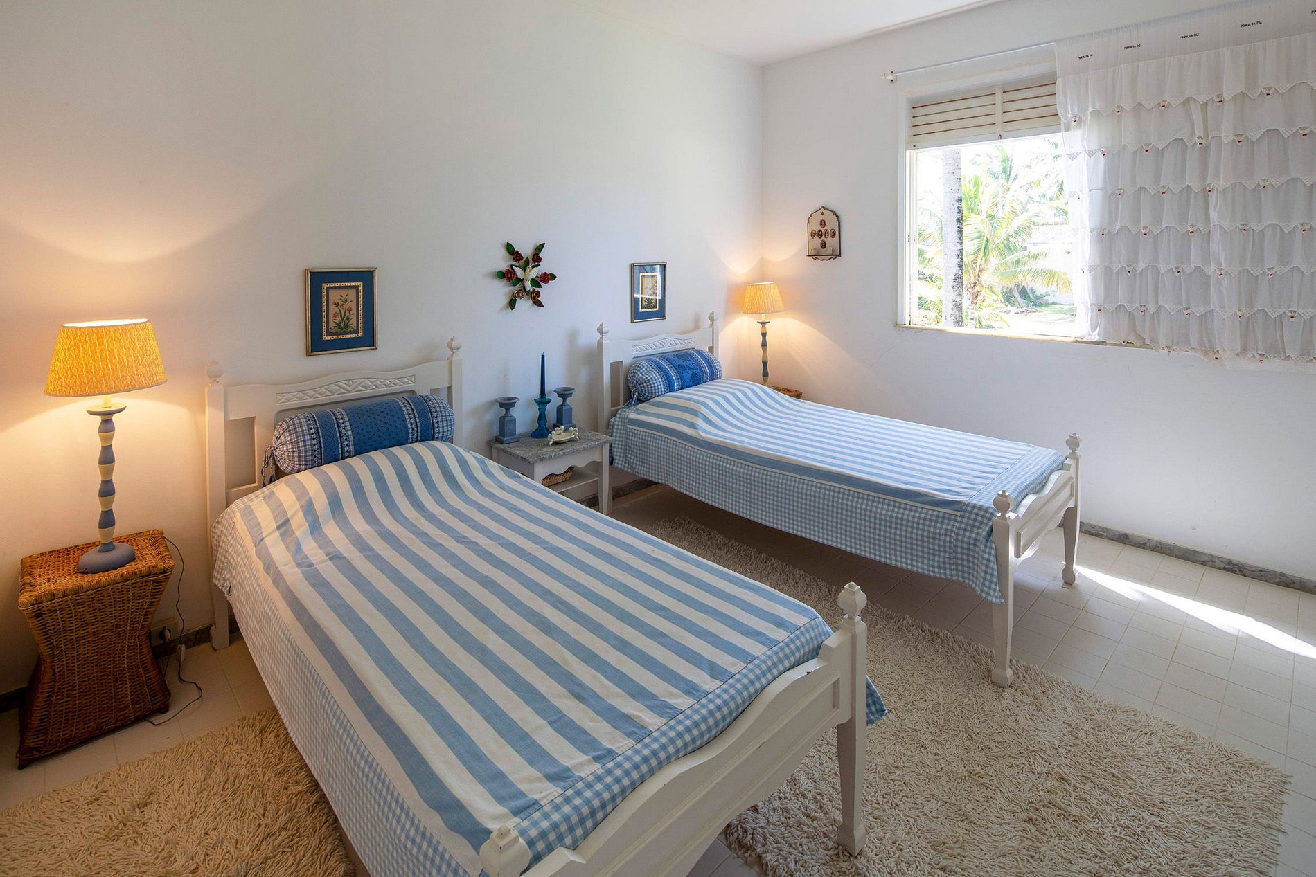 Dormitorio 2: 2 camas individuales, aire acondicionado, vista al jardín, baño compartido con dormitorio 3.