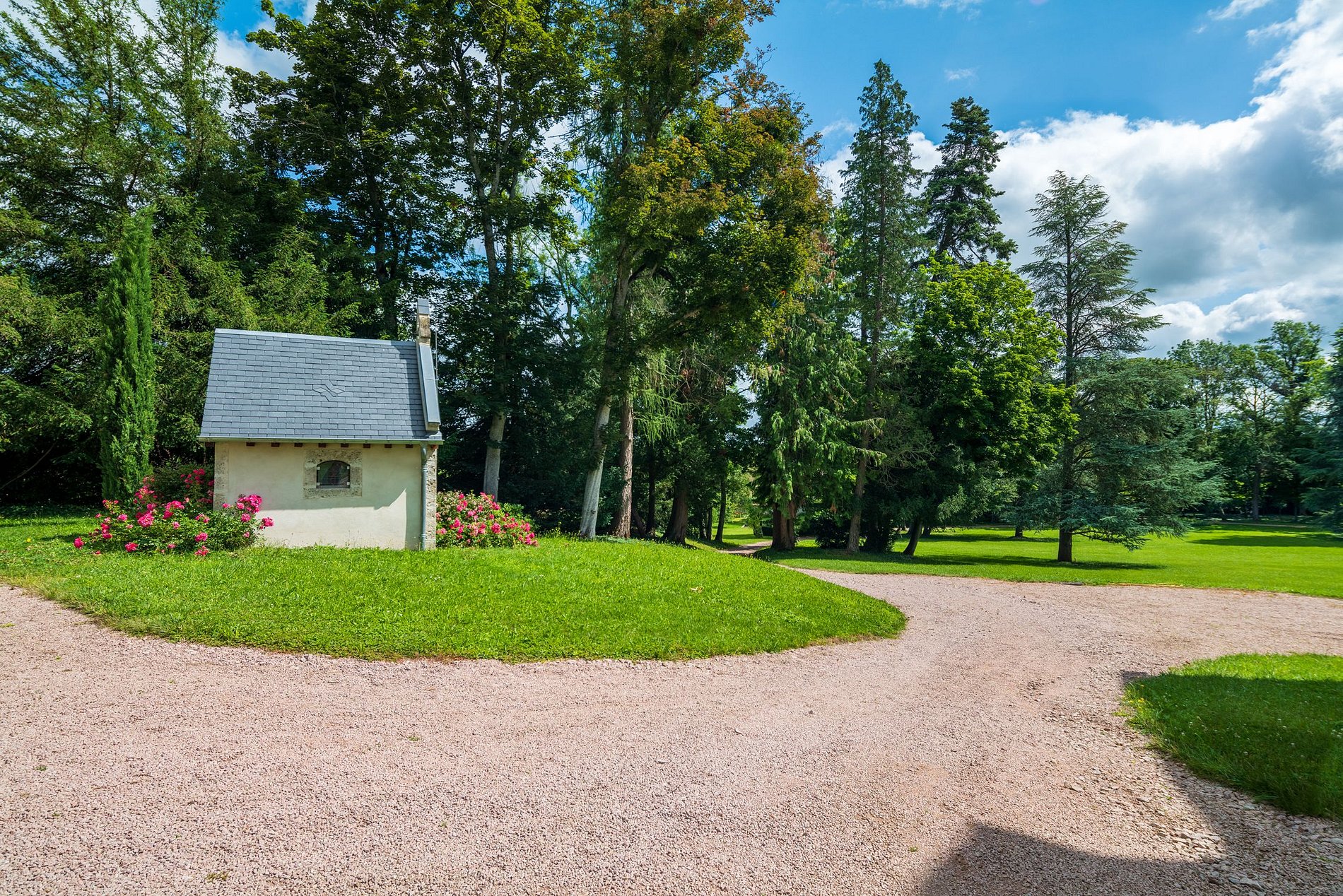 El parque de 3 hectáreas incluye un huerto, una piscina y un gran espacio para jugar, caminar o hacer un picnic con la familia.