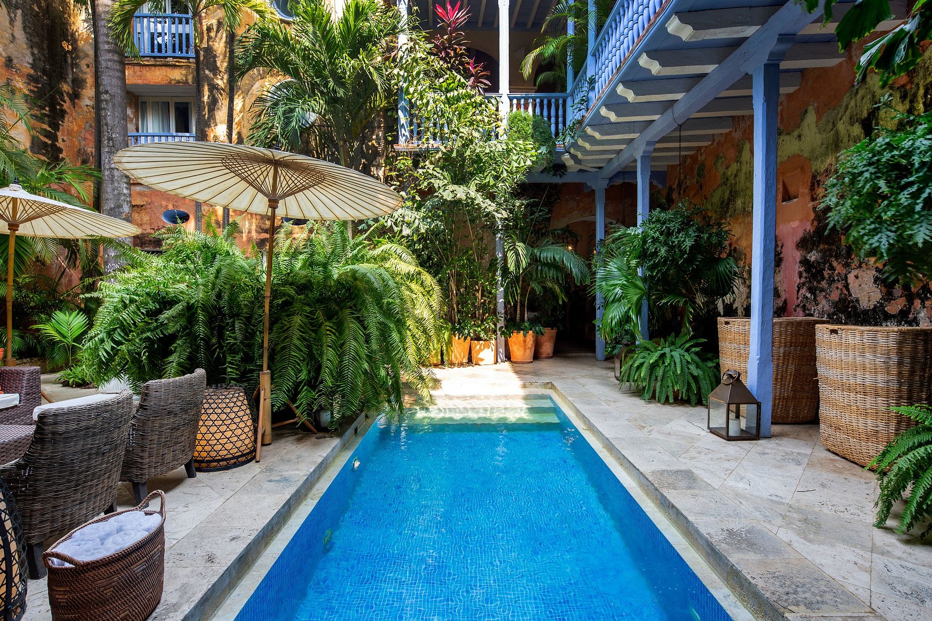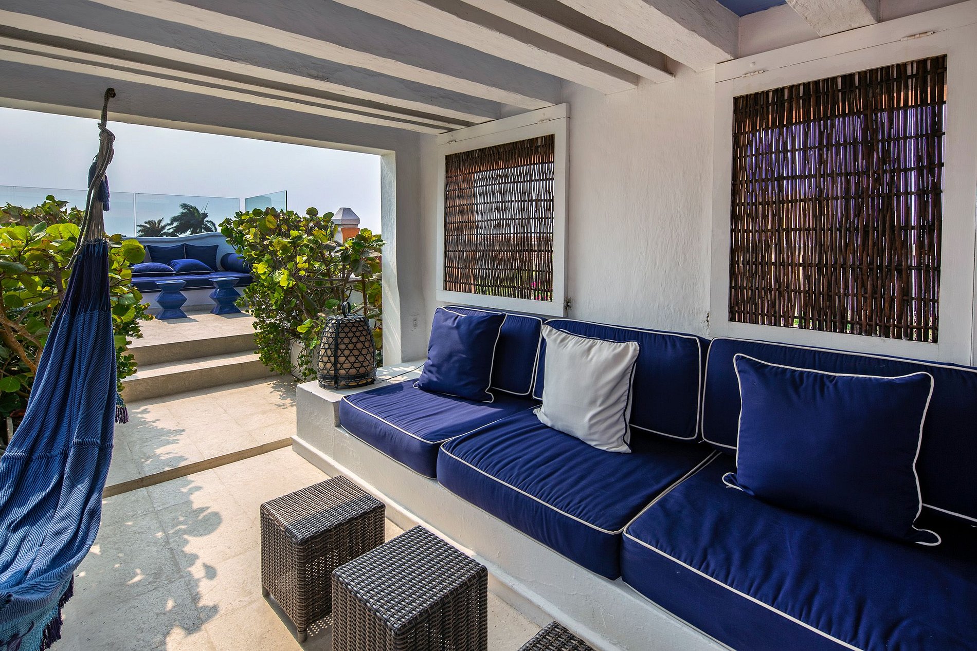 El área social más amplia, tiene dos salas ambientadas en una gama de tonos naranja, con pisos al estilo dominó, un sitio muy agradable que se ve muy bien en fotografías grupales. Cuenta con piscina en el primer nivel rodeada de plantas de la región y sombrillas al estilo japonés. En la parte superior, tiene terraza con jacuzzi y una sala de color azul marino.
