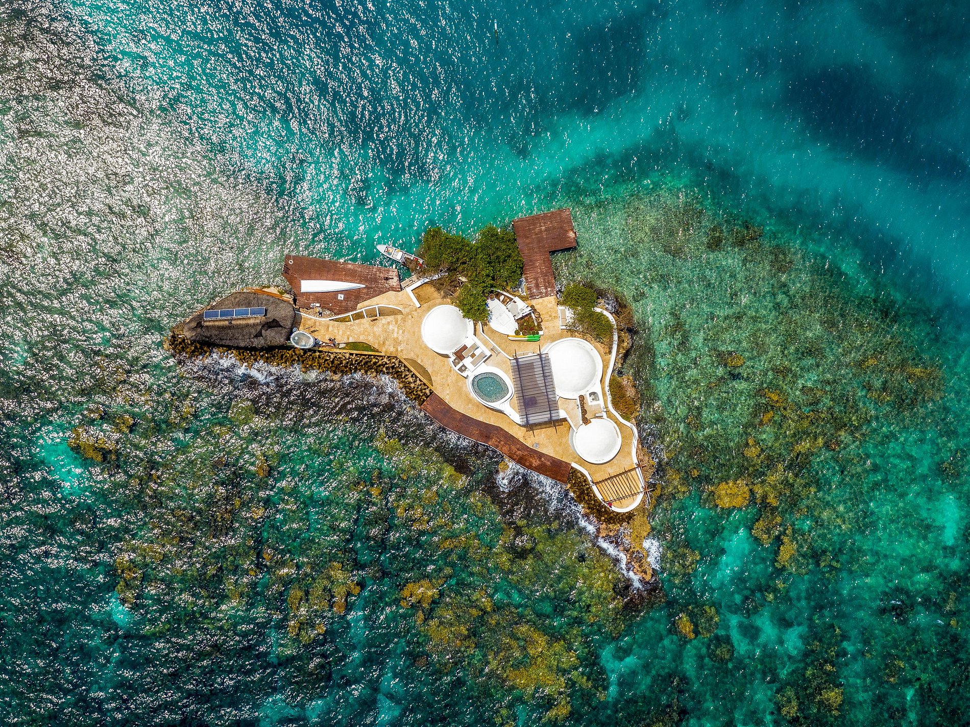 El paraíso hecho realidad. Esta prodigiosa isla, está ubicada en la Isla Pelícano, en medio del mar caribe. Su edificación cilíndrica es bastante imponente. Está dividida en tres secciones, una de ellas tiene en la superficie, una piscina redonda al aire libre con un deck y un bbq con vista de 360º a todo el mar caribe y la costa. A un extremo tiene un quiosco en el que podrá disfrutar de bebidas heladas para refrescarse y asimilar la temperatura de este lugar.