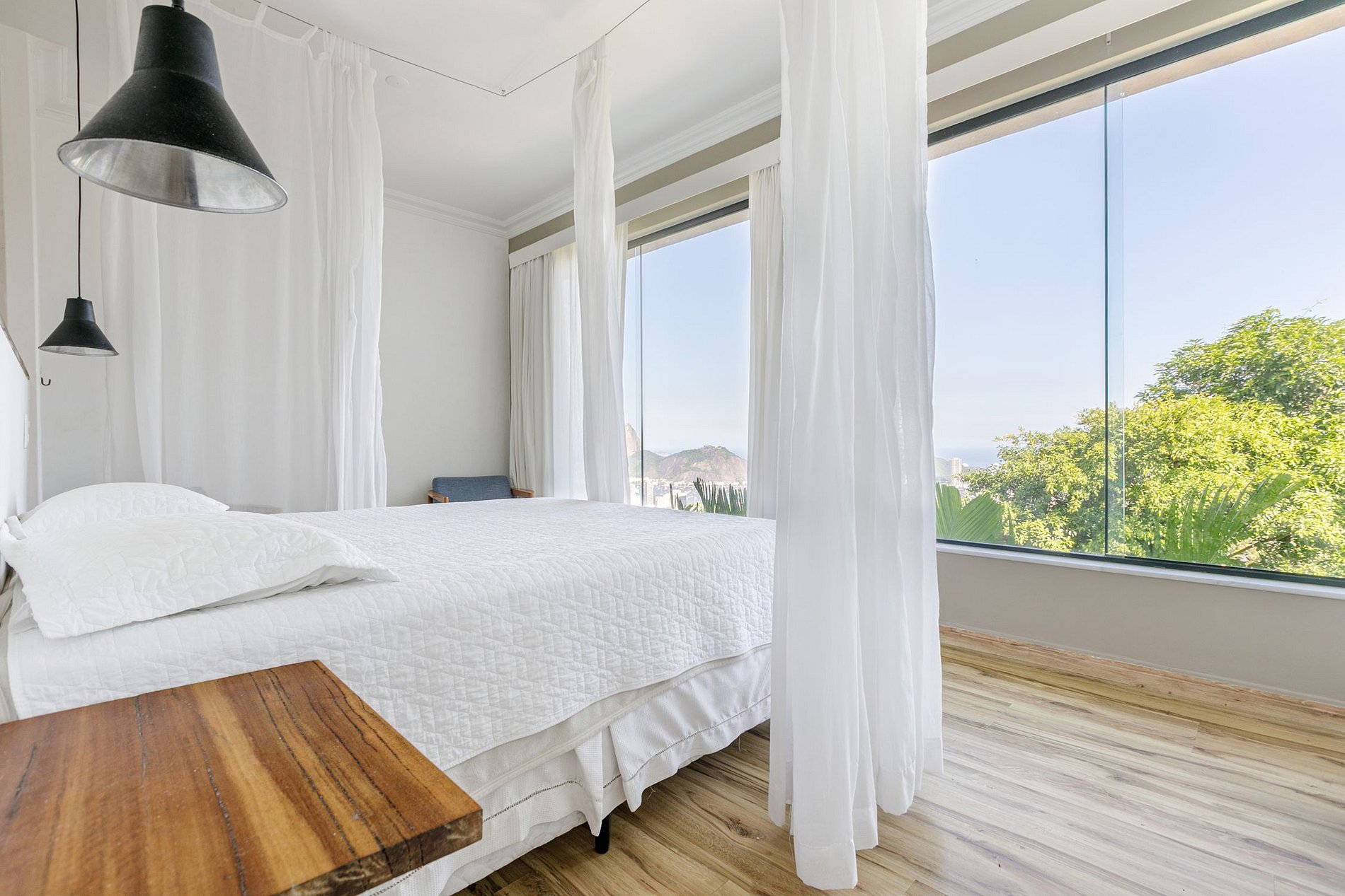 La vista panorámica desde prácticamente cualquier lugar de la propiedad es impresionante. Abarcan la estatua del Cristo Redentor, la montaña del Pan de Azúcar y la bahía de Guanabara hasta Niteroi con su horizonte distintivo.