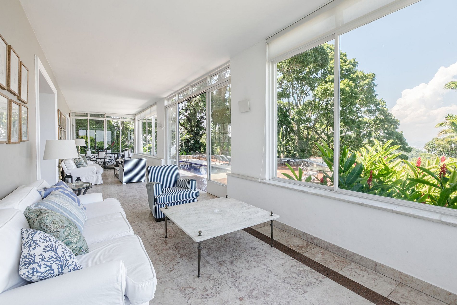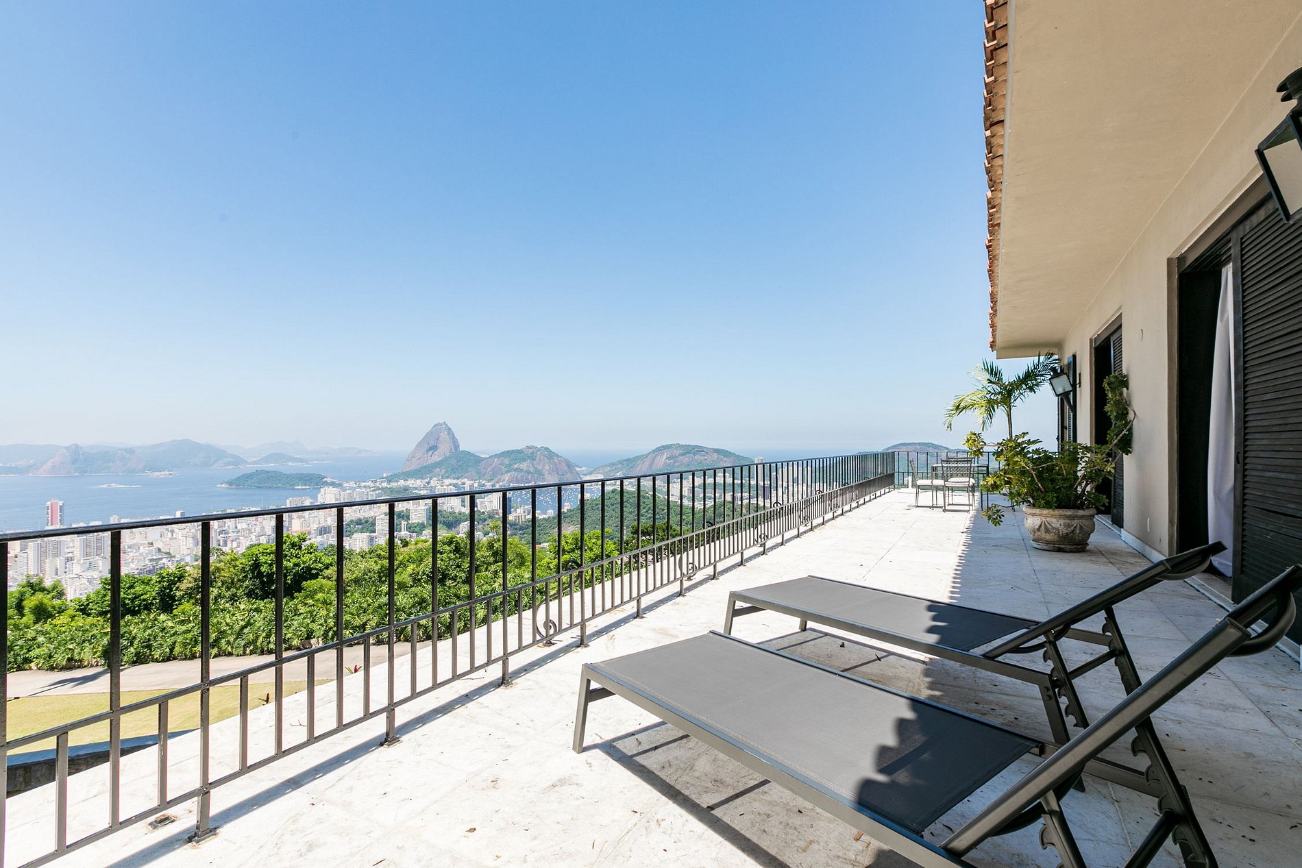 La vista panorámica desde prácticamente cualquier lugar de la propiedad es impresionante. Abarcan la estatua del Cristo Redentor, la montaña del Pan de Azúcar y la bahía de Guanabara hasta Niteroi con su horizonte distintivo.