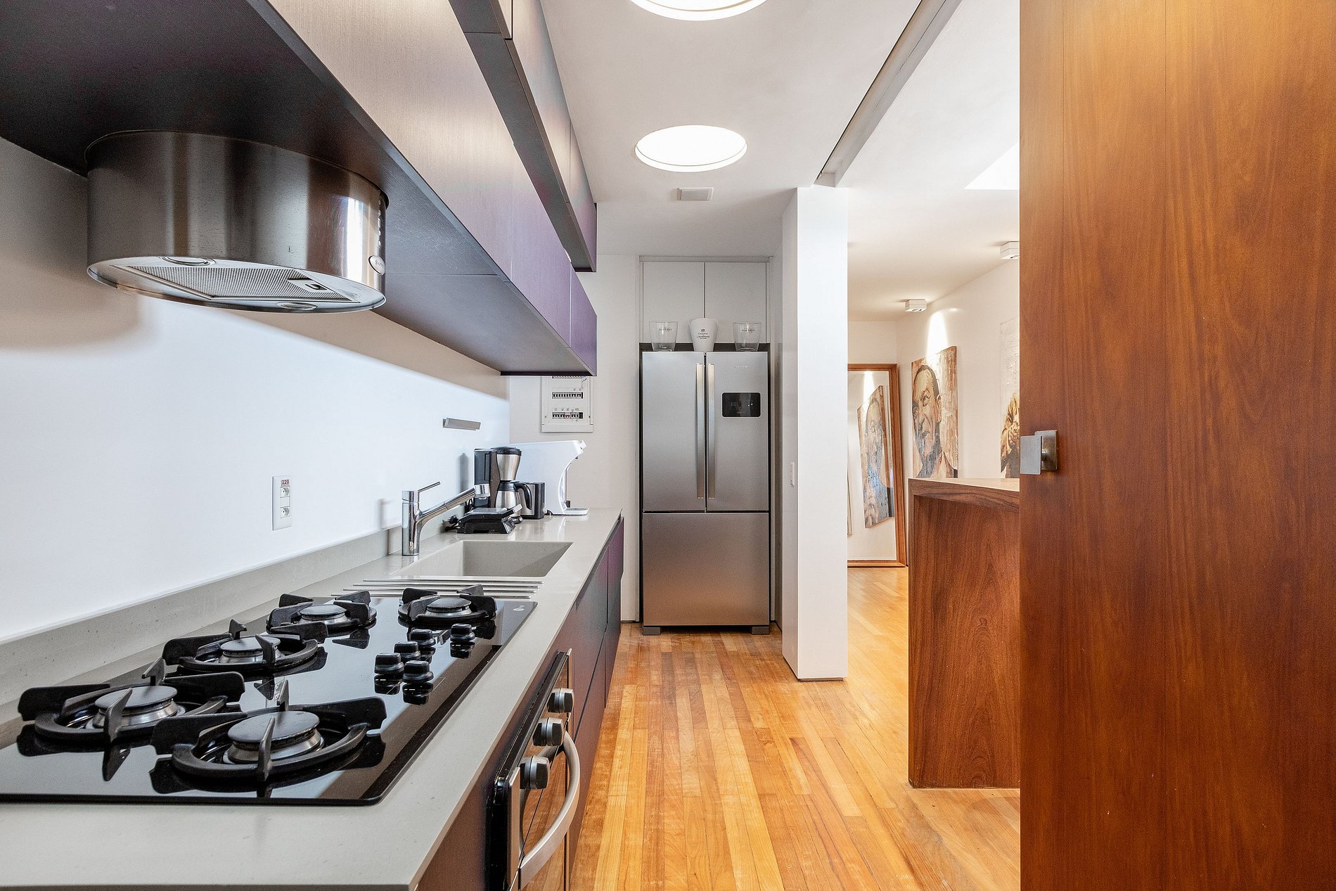 En la primera planta de este magnífico penthouse de tres niveles encontrara una moderna y sofisticada cocina con todos los implementos necesarios para preparar una deliciosa cena, tres habitaciones con banos completos dos con vista al océano y una tercera con vista al Cristo Redentor.