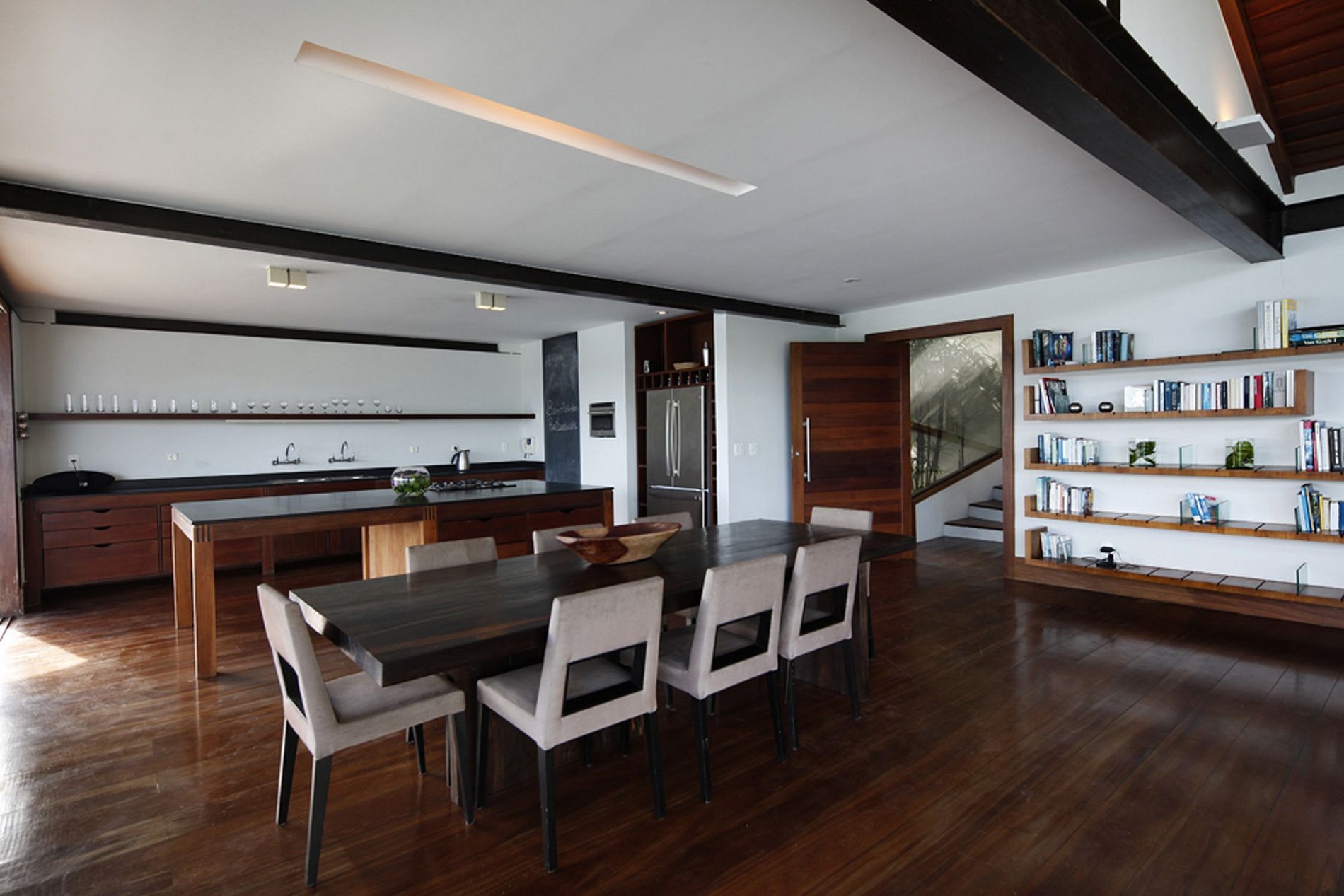 Cada detalle de esta propiedad, desde la incorporación natural y minimalista de la madera al ambiente, hasta las amplias ventanas, todo el diseño ayuda a atraer y aumentar la belleza serena del ambiente a su alrededor.