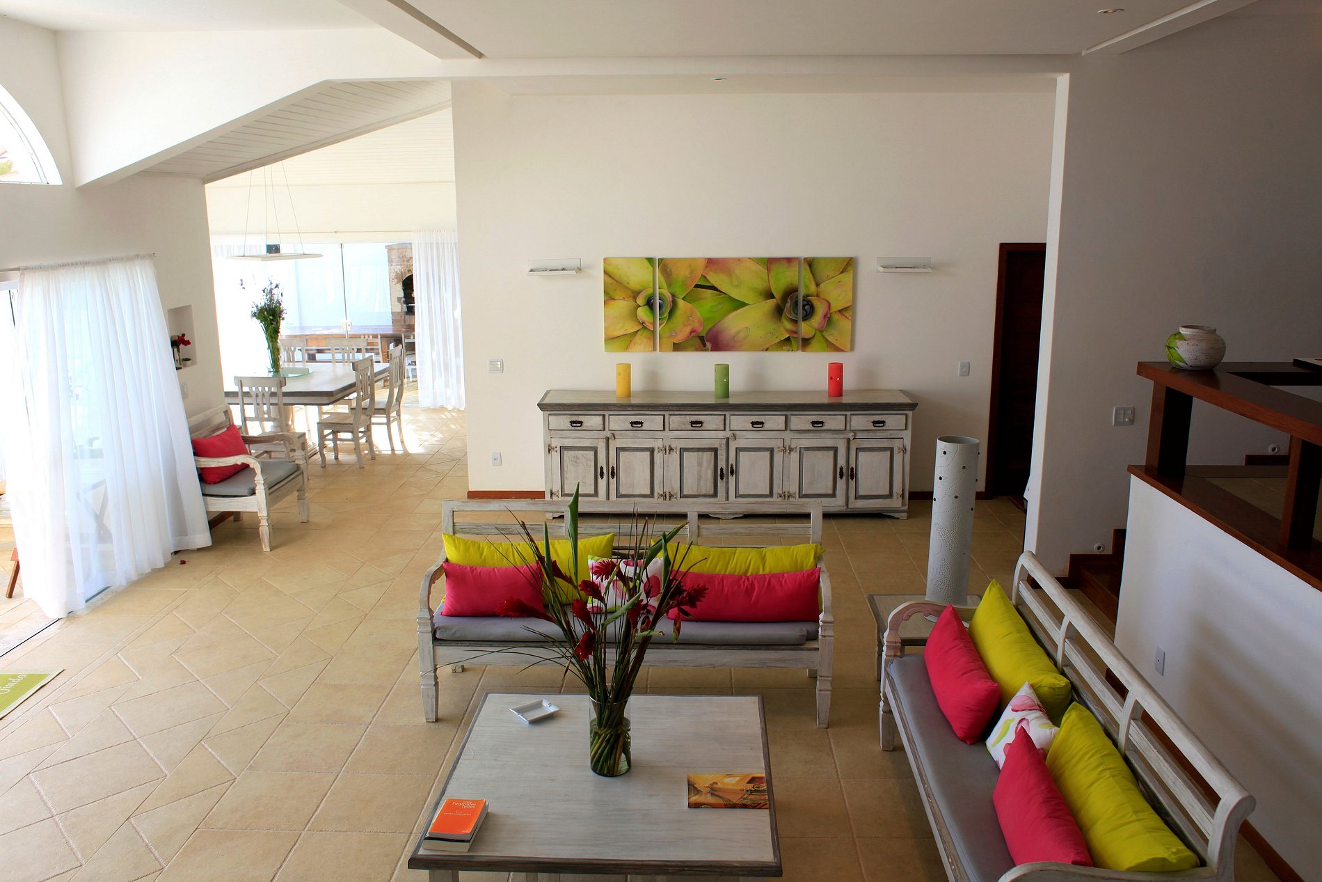 La sala de estar abierta es el punto de encuentro de esta casa de playa simple, pero adorable, amplio comedor, cerca de la frescura De la piscina y las brisas de las noches agradables. ¡El área tradicional de la barbacoa brasileña en la característica, impresiona!