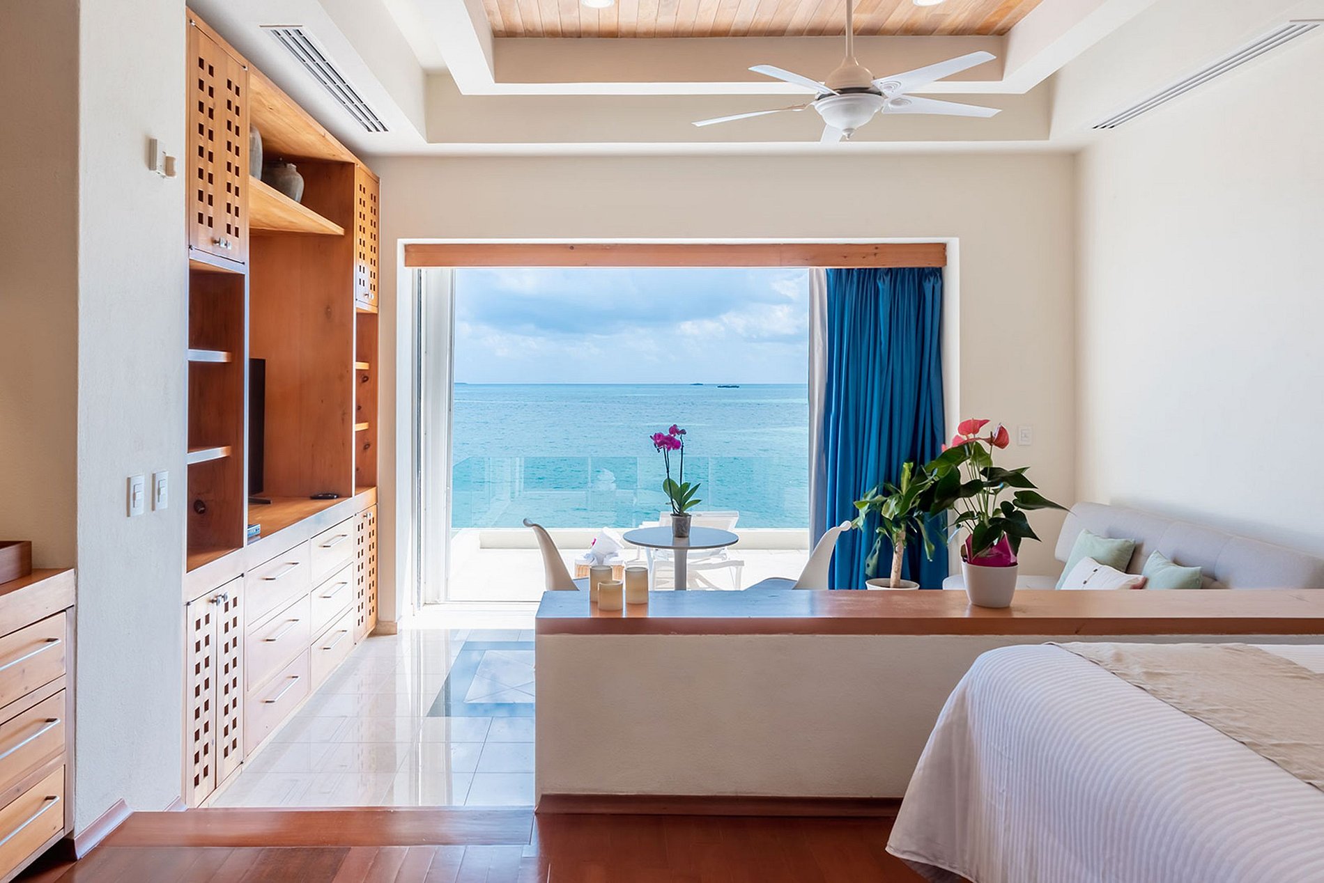 Futón, Cama king size, Aire acondicionado, Ventilador de techo, Baño privado con tina y regadera, Secadora de cabello, Balcón privado con vista al mar, Caja de seguridad, Smart TV, Artículos de tocador, Acceso wifi.