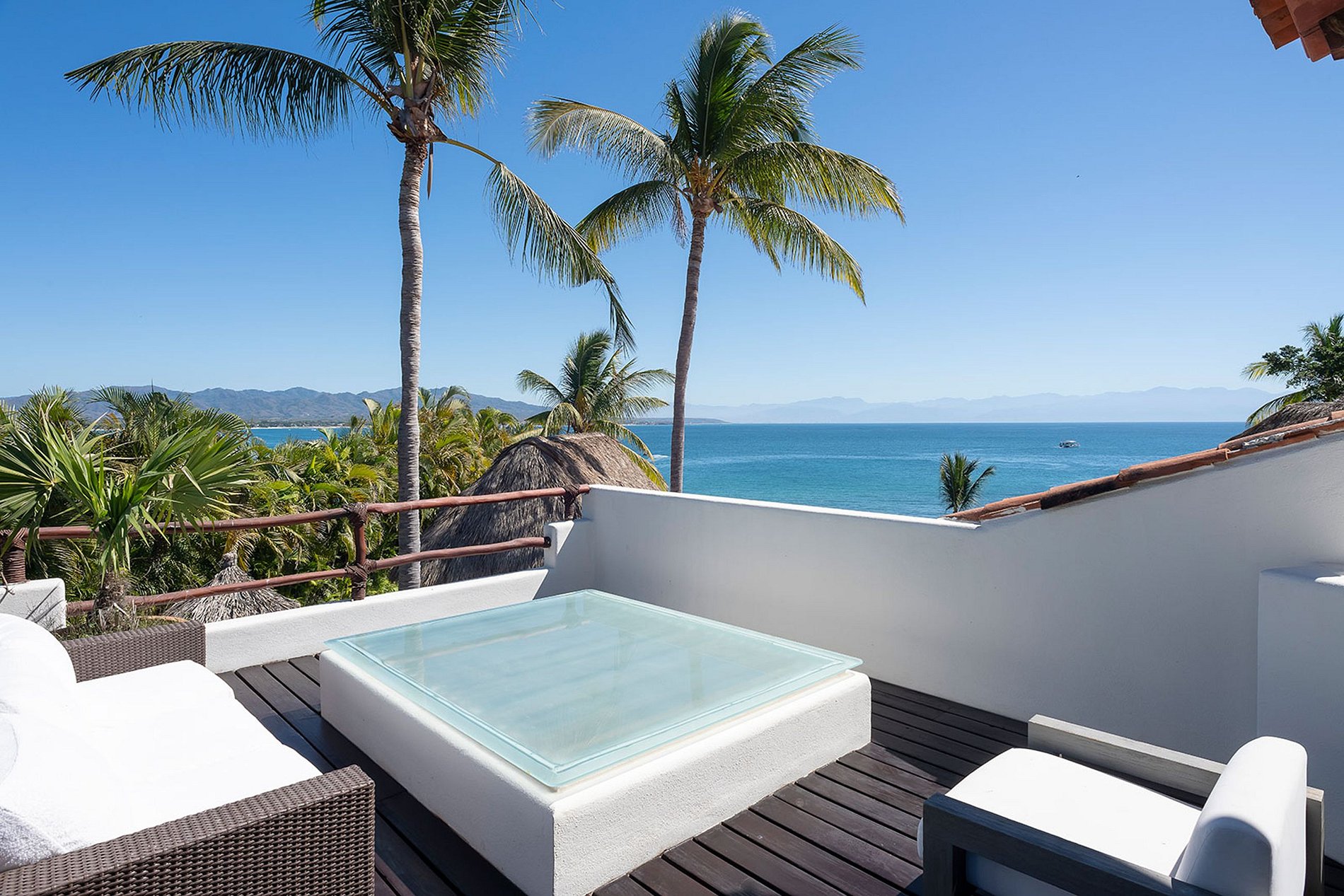 En el corazón de la villa, una imponente palapa enmarca las áreas principales de sala y comedor, creando un espacio abierto que fluye de manera natural hacia la piscina infinita y el océano. Los interiores incluyen múltiples salas de estar, sala de medios, gimnasio totalmente equipado y un cuarto de masajes, pensados para disfrutar cada momento con total comodidad.