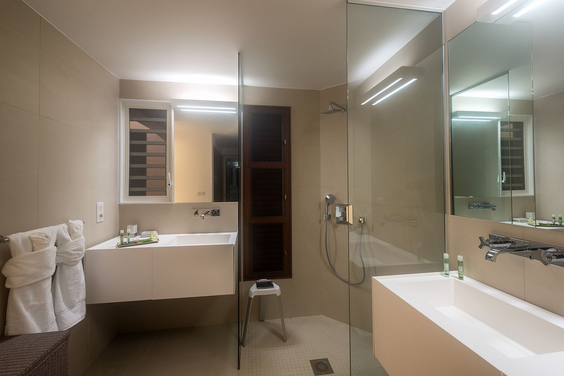 El diseño de planta abierta fluye armoniosamente entre los espacios interiores y exteriores. Una paleta neutra en tonos crema, taupe y blanco se complementa con acentos tropicales, mientras que los pisos en tono arena conectan los espacios habitables con el entorno natural. La terraza ofrece piscina infinita, camastros extragrandes, jacuzzi y un gazebo con bar y comedor al borde del mar. En el interior, un techo alto da amplitud al salón y comedor principal, que se conecta directamente con una cocina moderna totalmente equipada. La villa cuenta con televisión por cable, Wi-Fi y sistema de sonido exterior. Las cuatro habitaciones, de igual tamaño, disponen de cama king, vistas al mar y baños en suite con ducha tipo walk-in. Dos habitaciones tienen terrazas privadas, y varias incluyen duchas exteriores en jardines. Los huéspedes disfrutan de privacidad total dentro de una comunidad cerrada, y al mismo tiempo están cerca de Baie Nettle, los restaurantes y mercados de Marigot, y las tiendas de Grand Case y Philipsburg. Con limpieza diaria y concierge en sitio, esta villa ofrece una escapada serena y refinada en una de las playas más icónicas de Saint Martin.