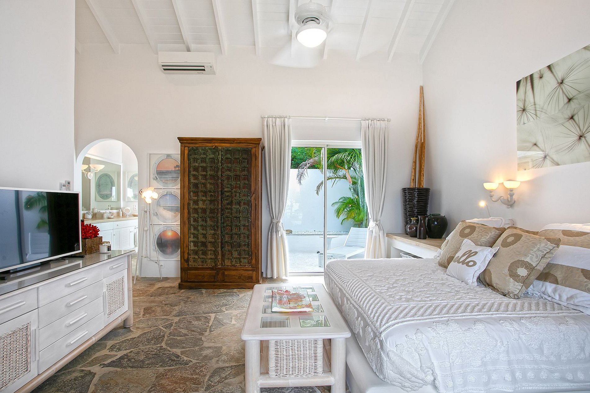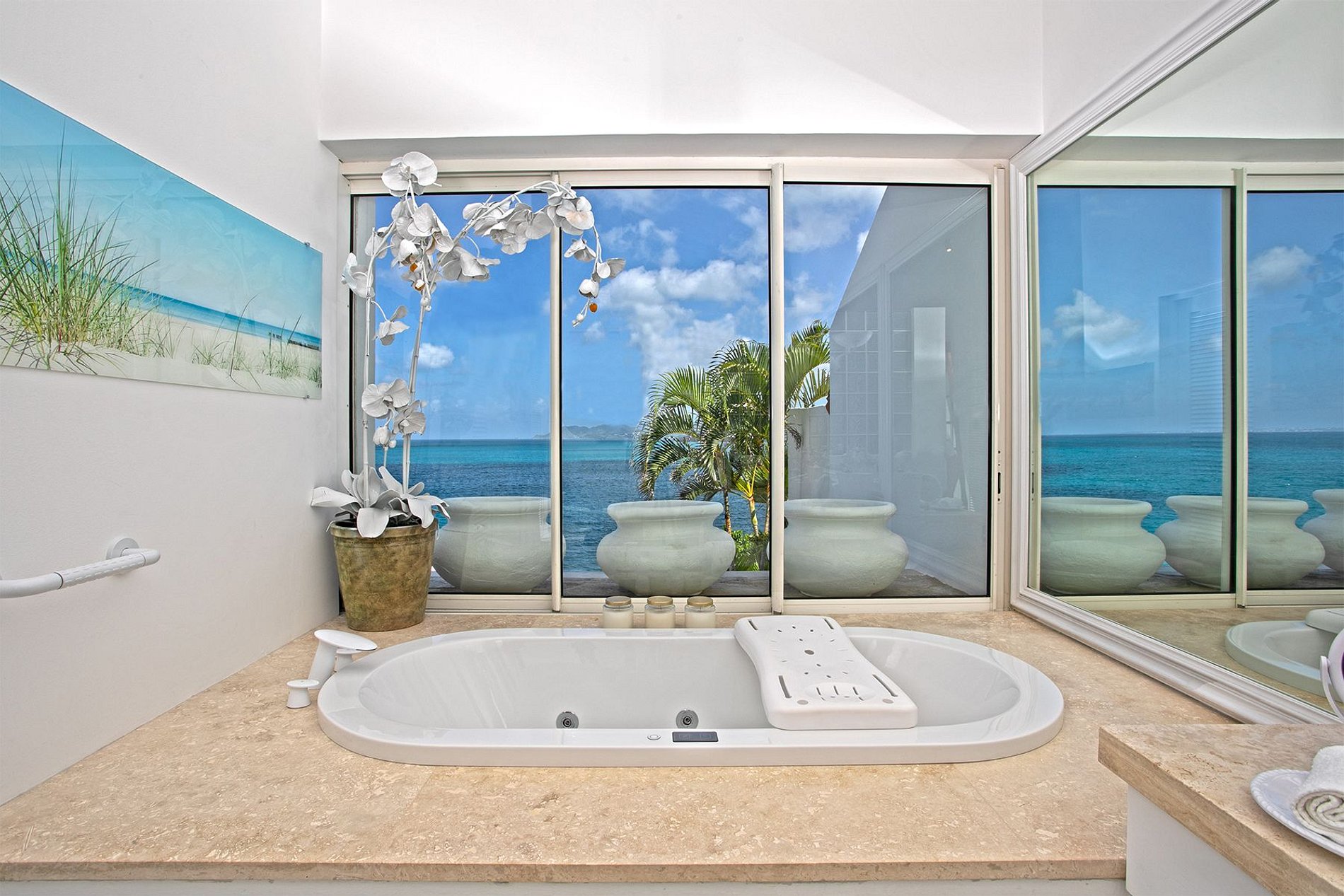 Entre los espacios adicionales se incluyen un spa con sala de masajes y vapor, gimnasio, jacuzzi exterior y áreas sombreadas para relajación. La propiedad es cerrada y cuenta con personal completo, incluyendo chef, servicio de limpieza, concierge y traslados de cortesía desde el aeropuerto. Una combinación ideal de privacidad absoluta con acceso rápido a los mejores restaurantes y la vida nocturna tanto del lado francés como del holandés de Saint Martin.