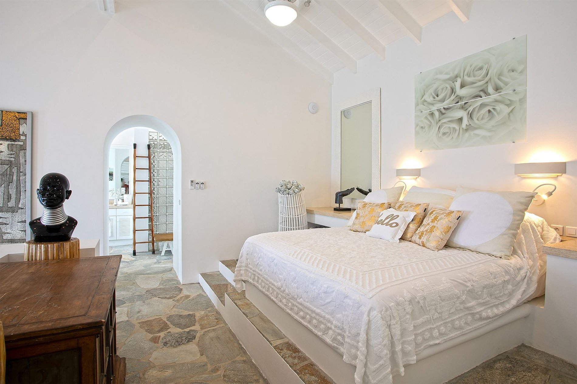 Al final de la playa Baie Rouge, esta extraordinaria villa de seis habitaciones ofrece una experiencia frente al mar única, distribuida en tres niveles en cascada. Con dos piscinas, vistas panorámicas, spa, y personal completo, es un oasis privado que combina elegancia mediterránea con lujo caribeño moderno.