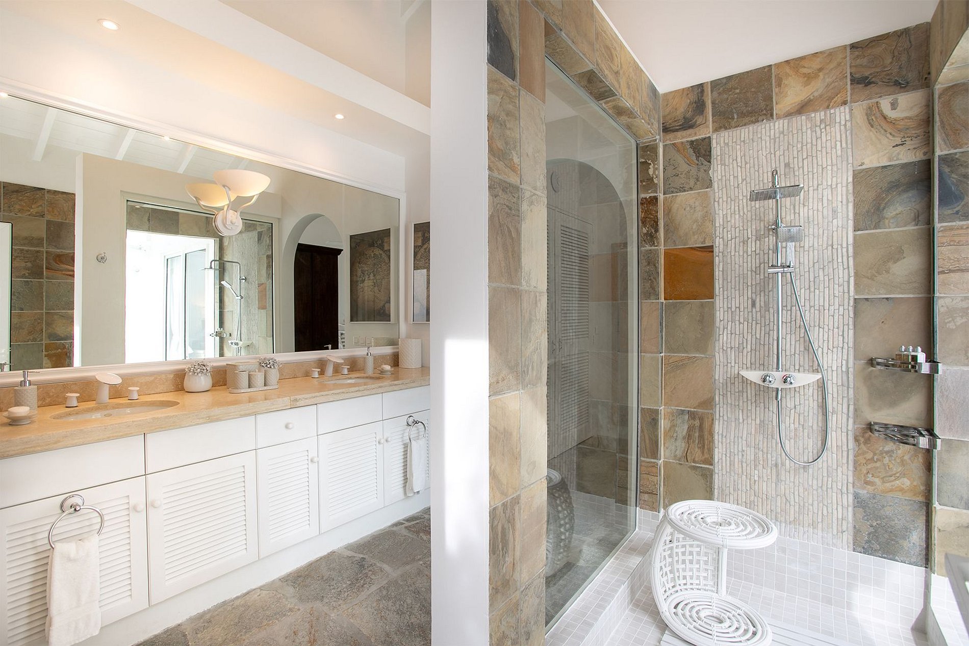 Entre los espacios adicionales se incluyen un spa con sala de masajes y vapor, gimnasio, jacuzzi exterior y áreas sombreadas para relajación. La propiedad es cerrada y cuenta con personal completo, incluyendo chef, servicio de limpieza, concierge y traslados de cortesía desde el aeropuerto. Una combinación ideal de privacidad absoluta con acceso rápido a los mejores restaurantes y la vida nocturna tanto del lado francés como del holandés de Saint Martin.