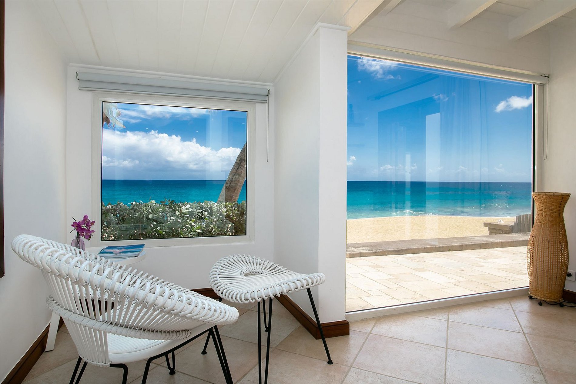 Con una ubicación privilegiada en la playa de Baie Longue, esta villa de estilo caribeño ofrece vistas al mar, jardines tranquilos y acceso directo a la arena desde la terraza de la piscina. Rodeada de vegetación tropical, es un refugio privado ideal para quienes buscan paz, confort y encanto isleño.