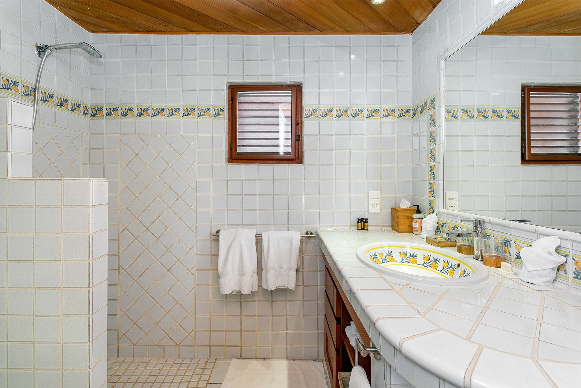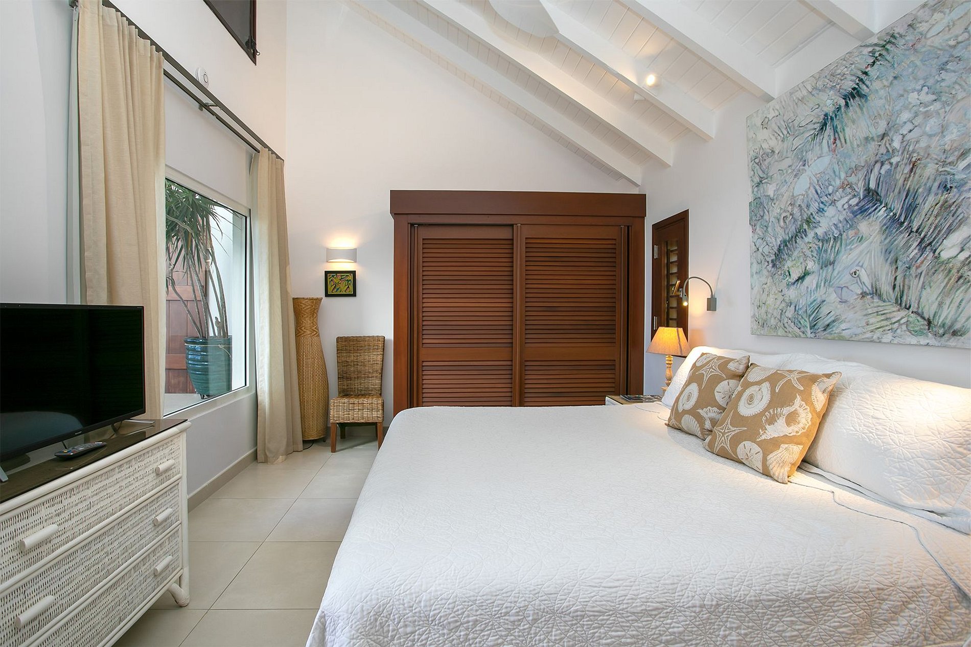 Las cuatro habitaciones tienen vista al mar, baño en suite, aire acondicionado y acabados naturales como madera, mimbre y lino blanco. El diseño combina elegancia caribeña con sencillez y comodidad. Un gazebo y un pequeño muro de piedra coralina marcan el paso hacia la playa.