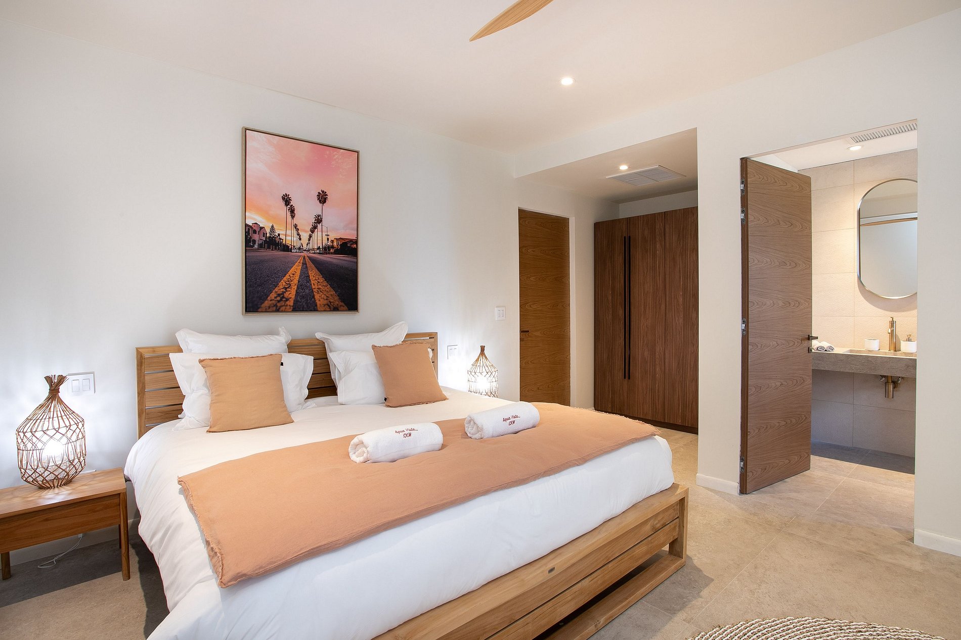 Cada una de las seis habitaciones está diseñada para brindar privacidad y confort, con camas king-size, baño en suite y acceso directo a terrazas o balcones. La habitación principal ofrece impresionantes vistas al mar y un lujoso baño con ducha tipo walk-in. La distribución es perfecta para grupos grandes, reuniones familiares o amigos que viajan juntos.