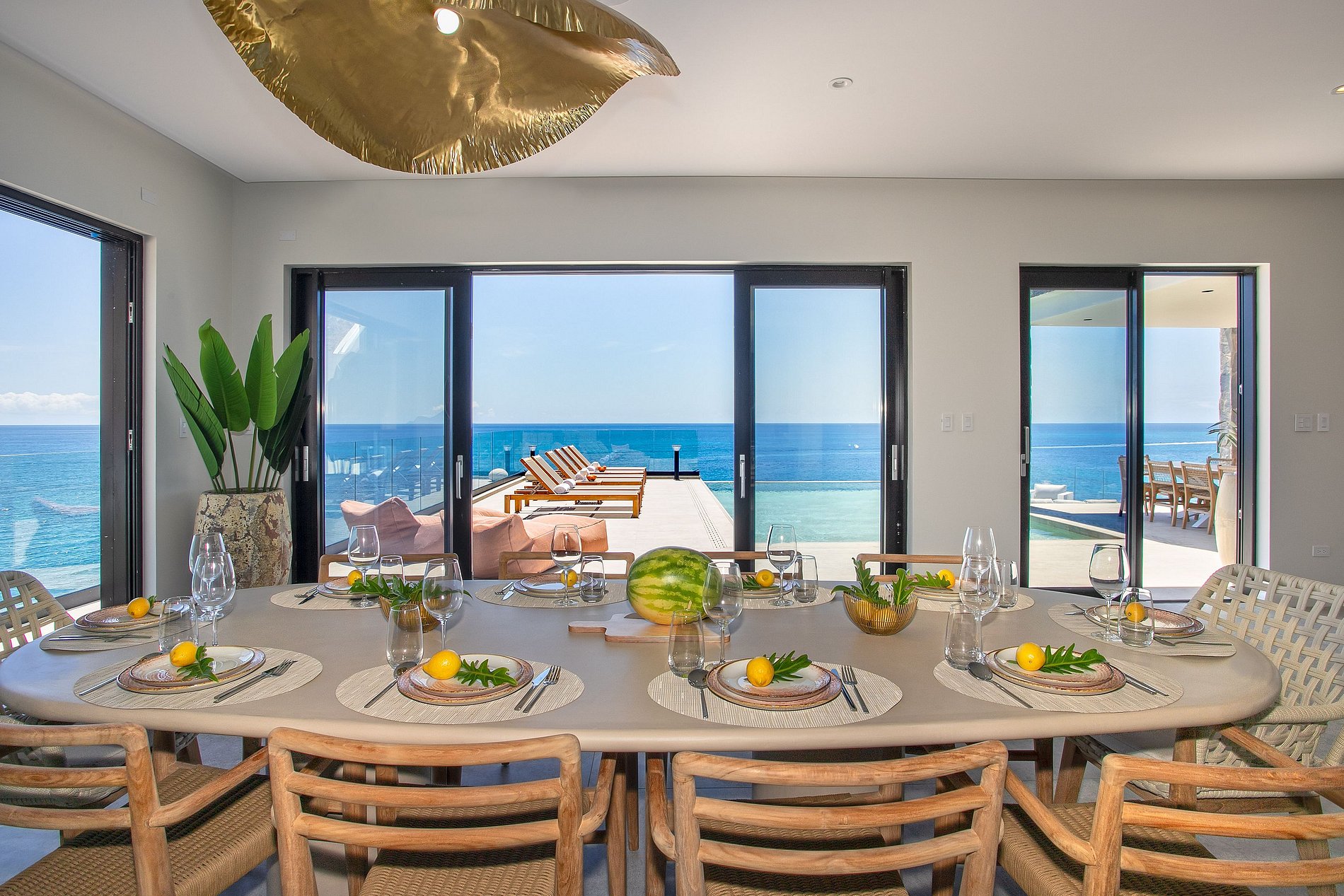 Esta nueva villa de seis habitaciones en Indigo Bay combina una arquitectura contemporánea con el lujo refinado del Caribe, ofreciendo vistas panorámicas al mar y a la isla de Saba. Su diseño abierto y los ventanales de piso a techo crean un ambiente luminoso y amplio que conecta a la perfección los espacios interiores y exteriores.